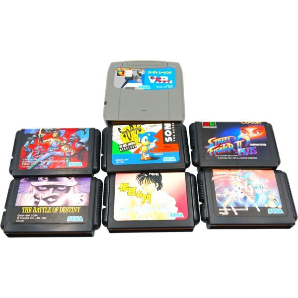 ★希少レア SEGA メガドライブ2 本体 HAA-2502 元箱一式 MD2 専用箱付ソフト7本 ソニック ストリートファイター 修羅の門など 現状品 #R198