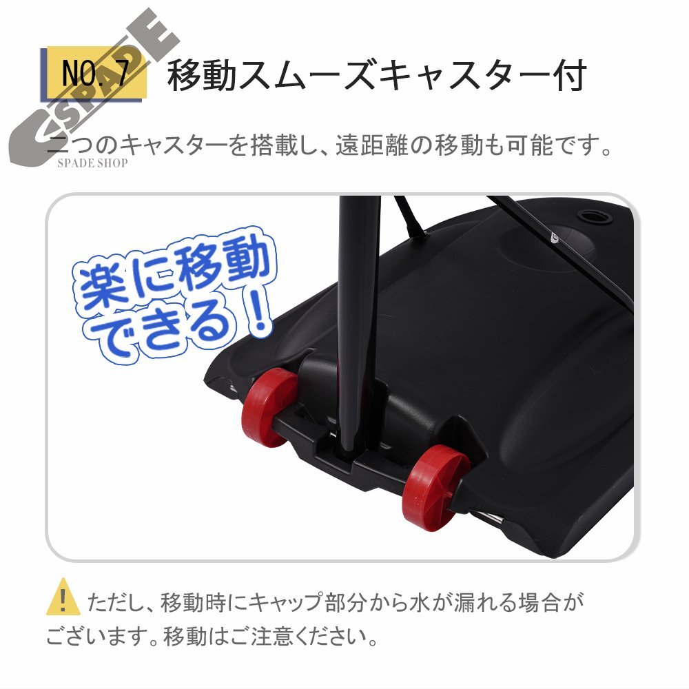 • 【移動スムーズキャスター付】 二つのキャスターを搭載し、遠距離の移動も可能です。 ただし、移動時にキャップ部分から水が漏れる場合がございます。移動はご注意ください