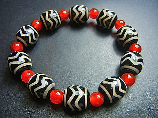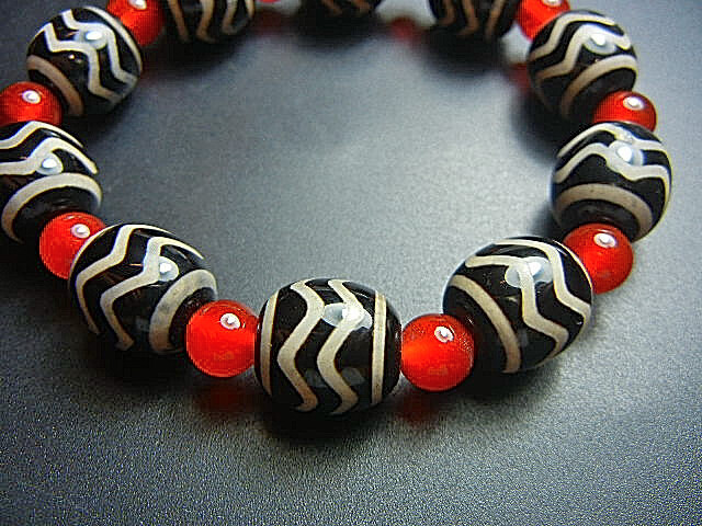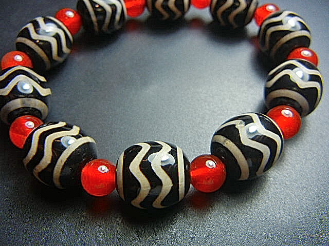 ★西蔵天珠数珠★JFV3652  水紋天珠  プレスレット数珠 14*15mm超勧め