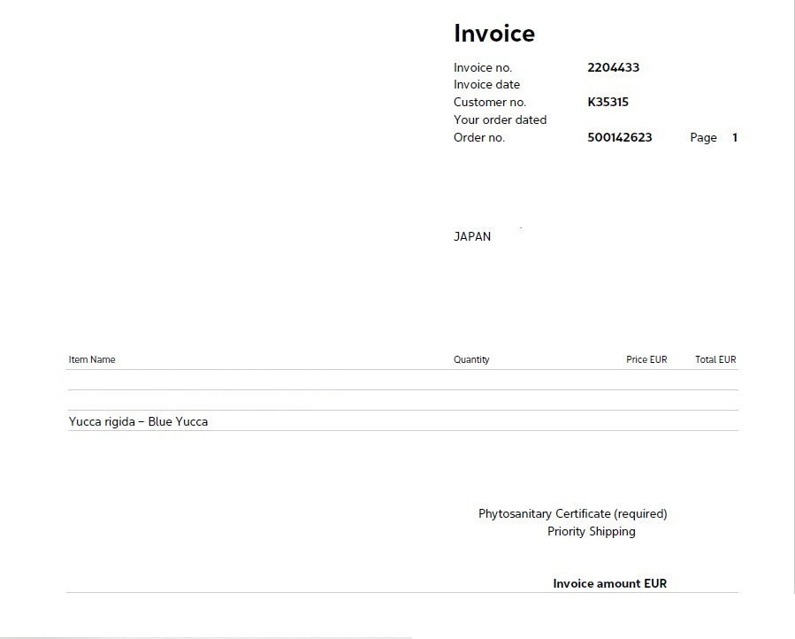 INVOICEも画像の通りございます。
