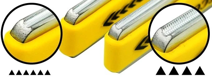 ラバーグリップの三角形(▲)マークはヤスリの目の粗さを示しています。