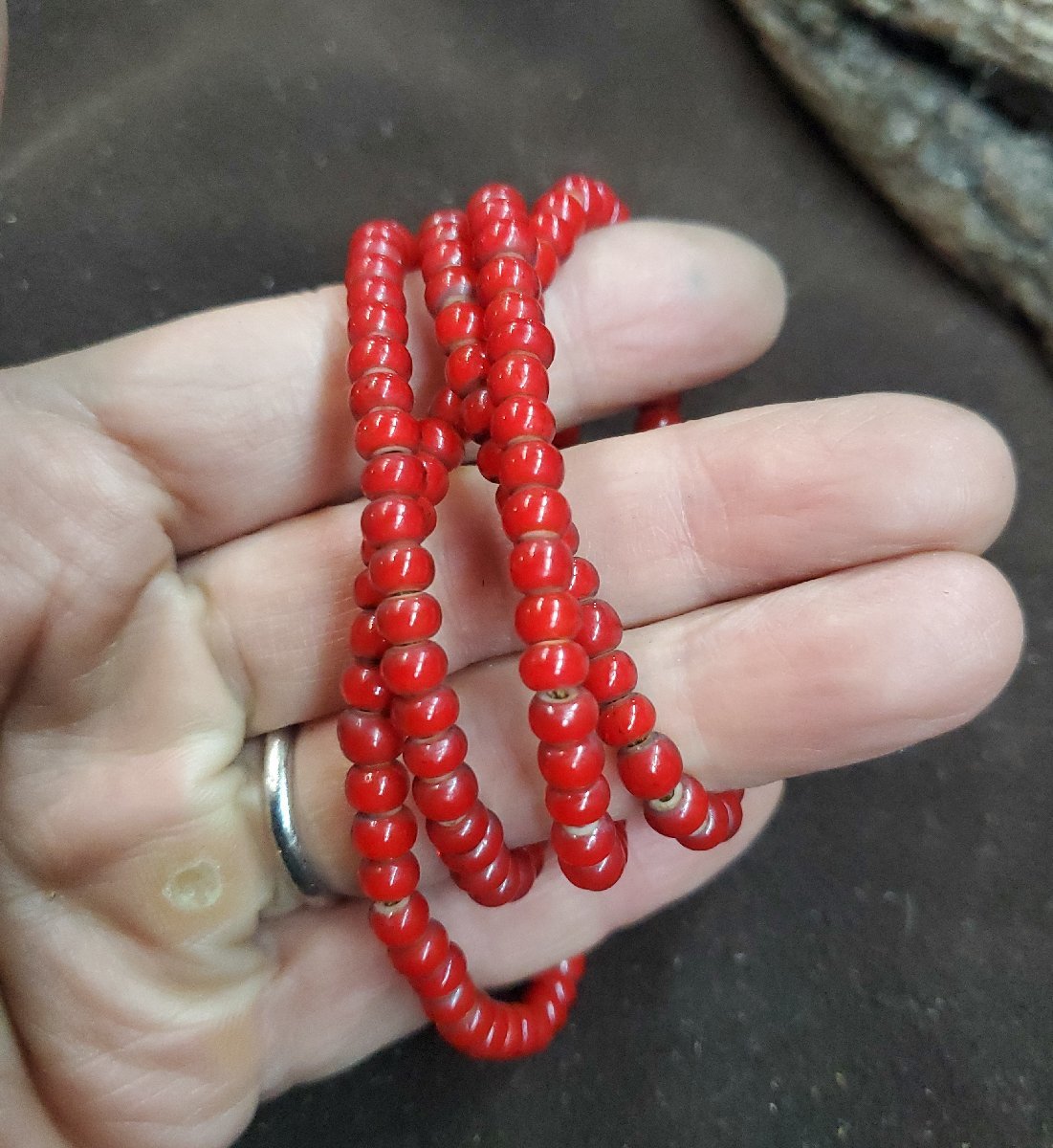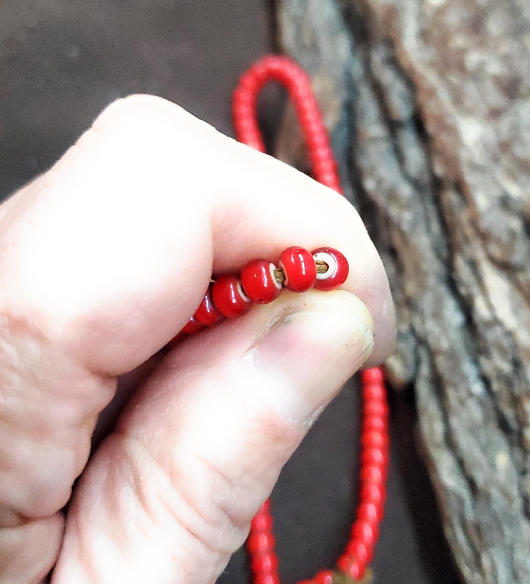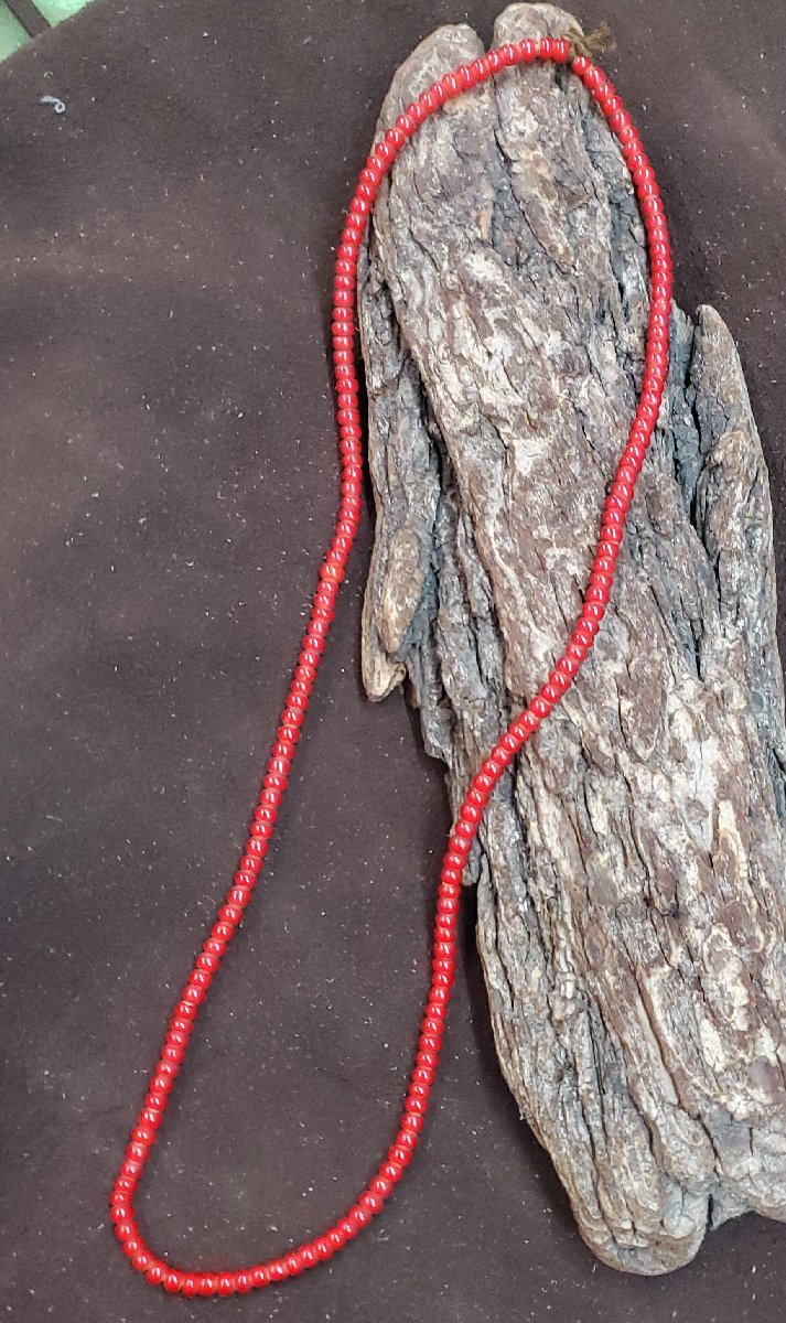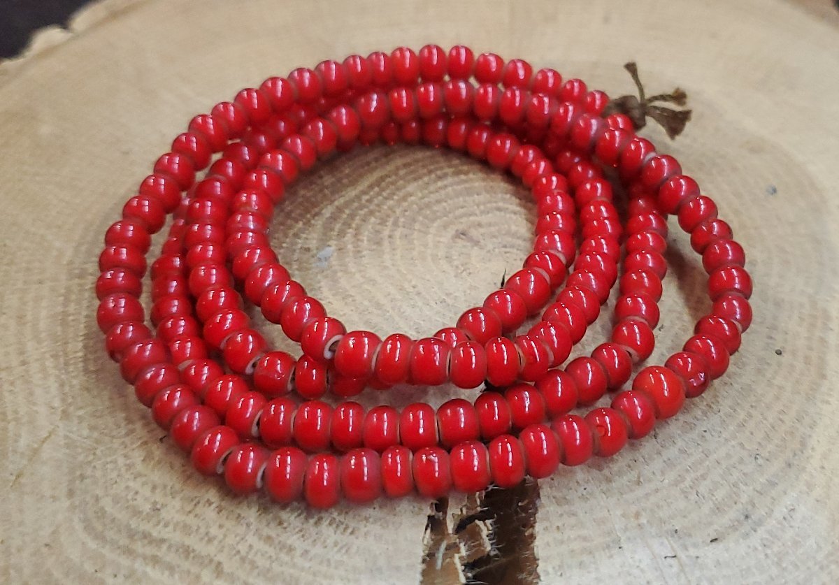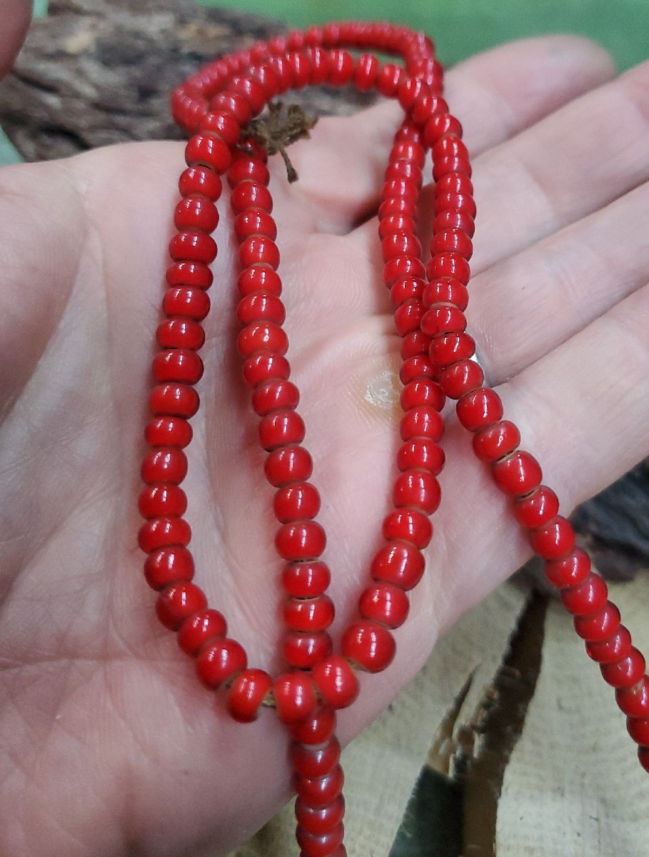 Y-269 ホワイトハートガラス3000円~オールドビーズ風(赤)1連約64cm役160粒