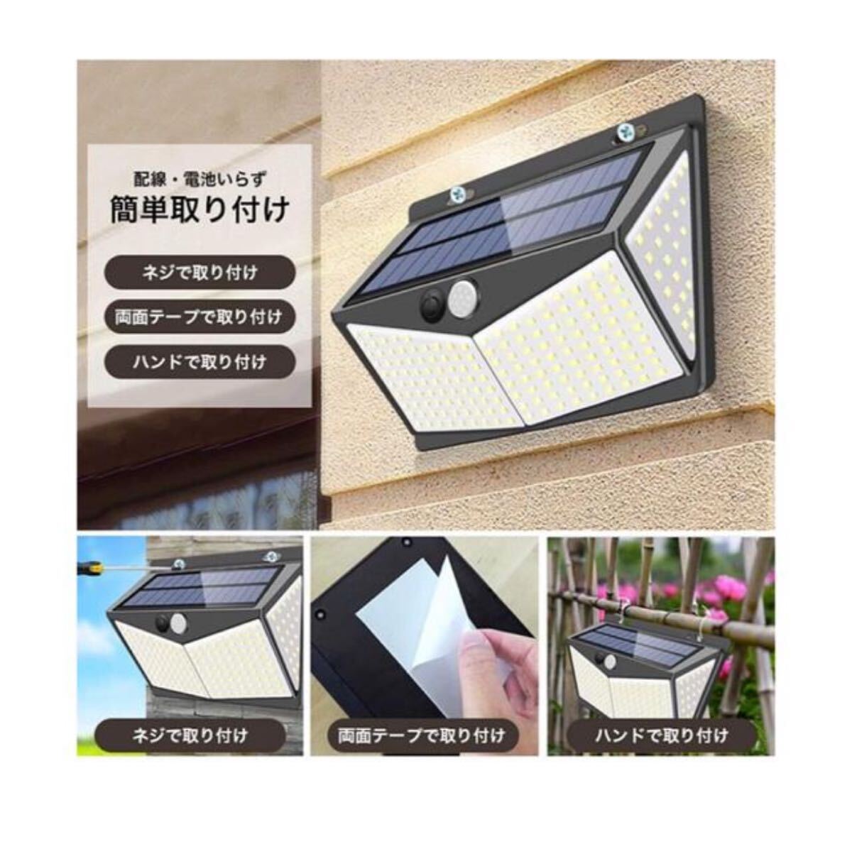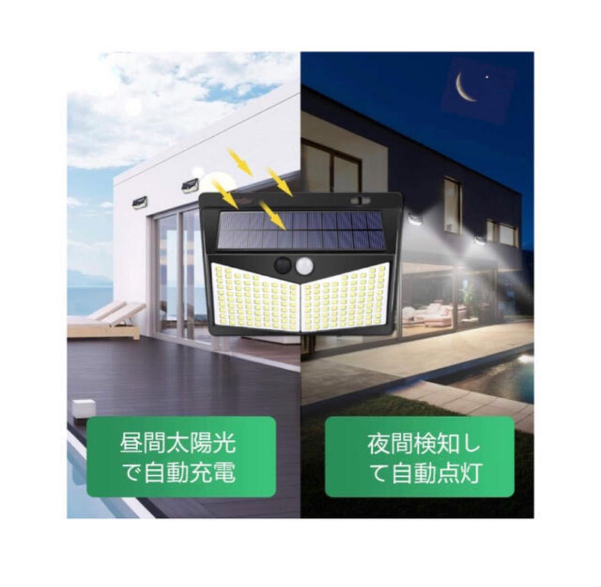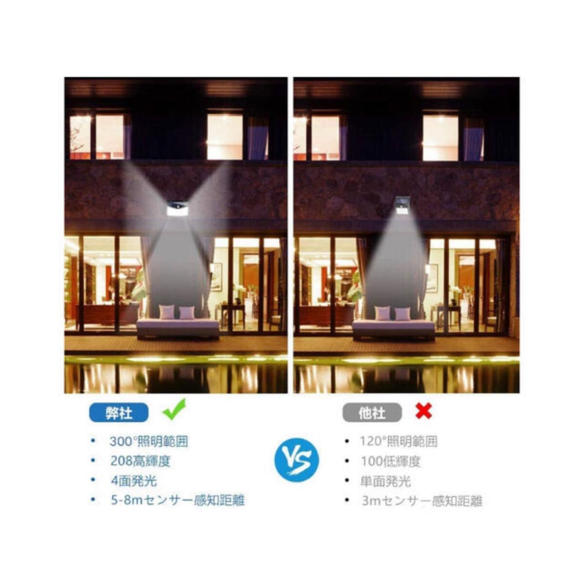 【高輝度ライト・4面発光・300°照明】ソーラーライトは発光面が4個まで増やして、四面に同時照射可能、高輝度208個のLEDライトを備え、照射範囲が300°以上に達し、 照明の範囲が大幅に広くなります。夜間にパーク、ポスト、ガーデン、縁側、ガレージなどを照らし、素敵な照明効果を提供してくれ、防犯効果に十分期待できます。