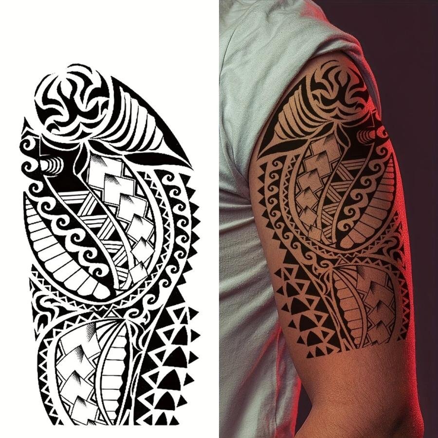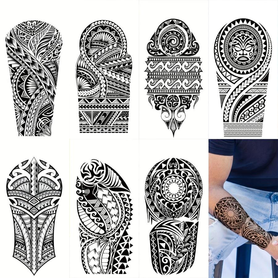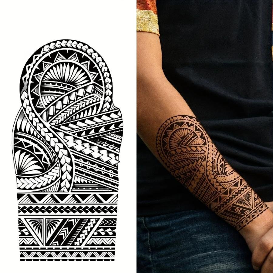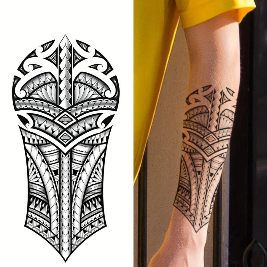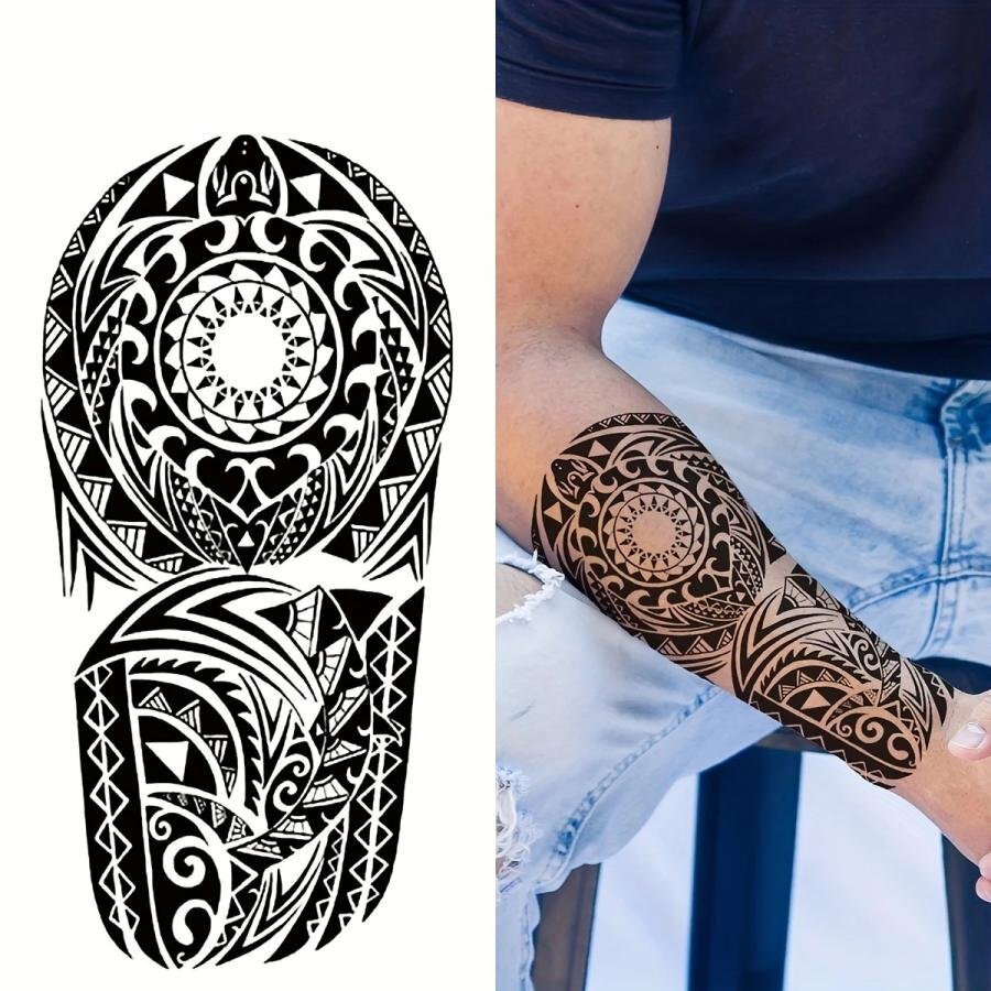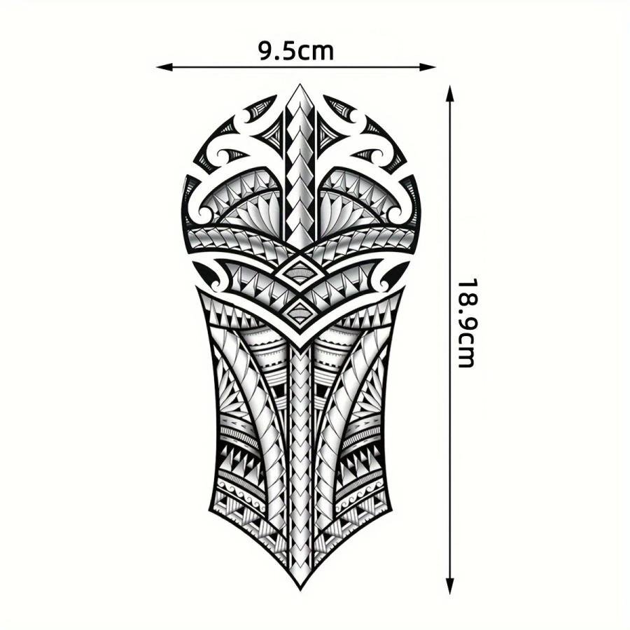 | 台紙サイズ 18.9cm×9.5cm 肘から手首ほどのサイズのタトゥーシールです。 ※敏感肌、目の近く、または接着剤にアレルギーがある場合は使用しないでください。 【使用方法】 ●透明フィルムを剥がし、スプレーまたは濡れタオルでステッカーをしっかりと濡らして下さい。 ●10秒間、肌に密着させ、ステッカーを剥がします。その後約2時間濡らさないで下さい。 ●約、6時間後に発色開始→約24~48時間程度で完全発色します。 ●約1~2週間持続します。 【貼る時のコツ】 シートそのままの大きさだと曲げ辛く密着しにくい為、余白部分を切ってから貼るのがコツです。 ※商品画像の色味は画面でみた場合と実際は多少の色差が生じる場合がございます。 ※海外製品のため入荷時点でしわや折れ目が付いている場合がございますが、ご使用には問題ございませんので予めご了承ください。
