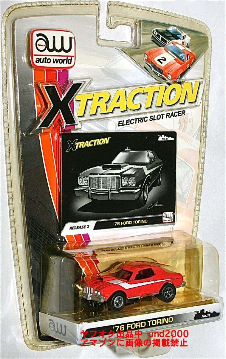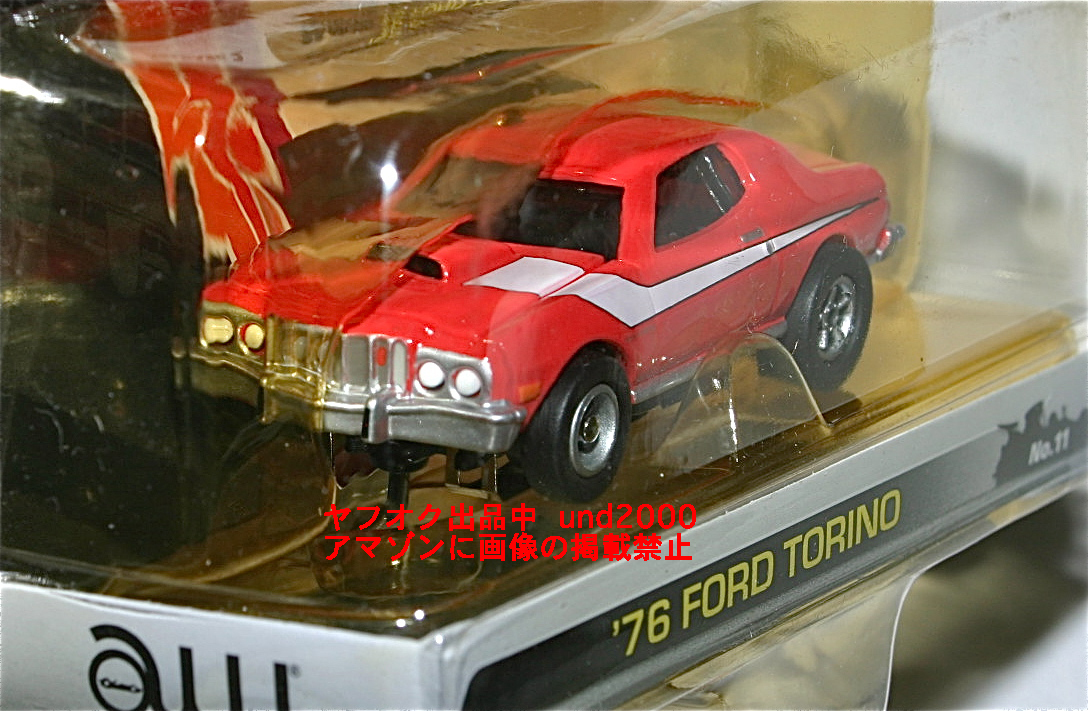 Round 2 (Auto World )、X-Traction Racers Release 2 - No. 11、'76 Ford Torino。スモーク・ウィンドー。スケール HO、全長約7センチ。2007年ごろのモデル。当初、Johnny Lightning での発売告知では、TVシリーズ 「刑事 スタスキー & ハッチ」 の版権あり、劇中車仕様でしたが、会社がRC2(Racing Champions、Ertl)に買収、さらにスロットカー・ブランドがRound2に再買収され、Auto World での発売時にはホワイト・ラインが逆の無版権モデルとなりました。(後に正規版権モデルも発売されています。)並行輸入品。未開封、長期保管品。ブリスターに変色があります。未開封品に付き、現状扱いノークレームでお願いいたします。お支払いはヤフーかんたん決済のみ。東京発、ゆうパック持込60サイズ(東京700円 - 沖縄1330円)、レターパックプラス600円、または定形外郵便 (追跡番号、保険無し)450円の発送となります。(上記の送料はこの出品物のみの料金となります。複数落札、同梱包発送の場合、重さ、サイズが変わりますので送料が変わります。)3日以内のご連絡、かんたん決済の支払期限内(通常5日、支払方法により異なります)のお支払い厳守でお願いします。入札される前に「自己紹介」もあわせてお読みください。 検索用ワード 赤い稲妻 グラントリノ パトカー パトロールカー ポリス ポリスカー Police Car Ford Gran Torino Slot Car