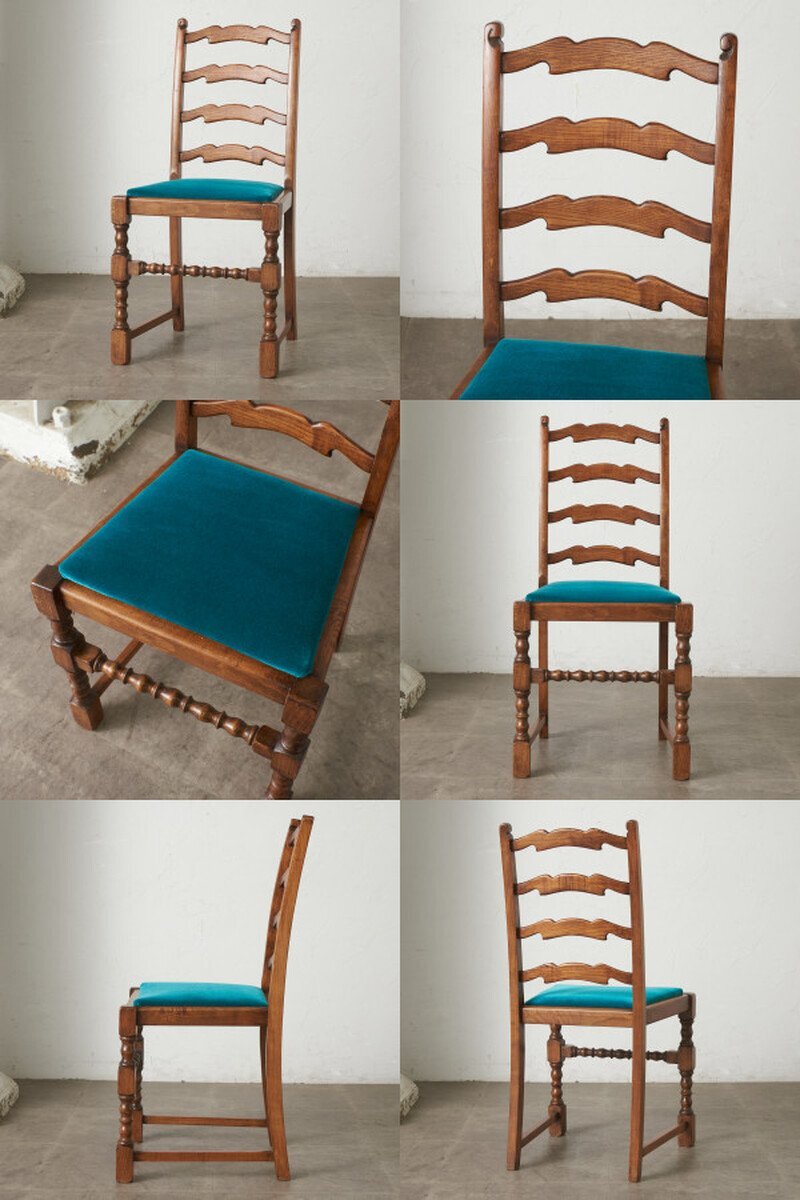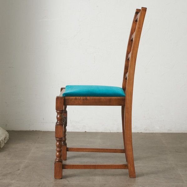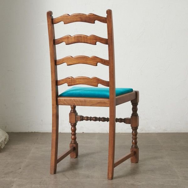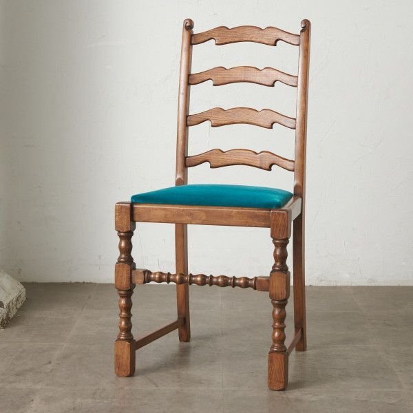 背もたれやボビンターンレッグの装飾など、随所に美しいディテールを備えたクオリティの高いチェア。古き良き西欧の伝統を感じさせるクラシカルなデザインで、使い込まれて程よく古びた風合いが素朴で優しい雰囲気を演出します。