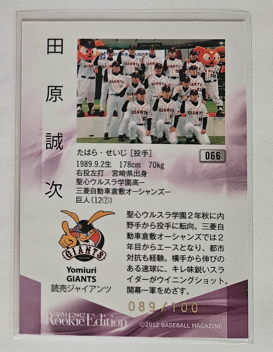 2012年BBM ルーキーエディション 銀箔サイン入り100枚パラレル 田原誠次 巨人 ジャイアンツ