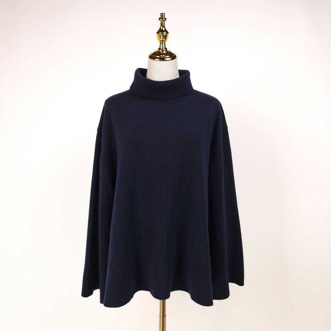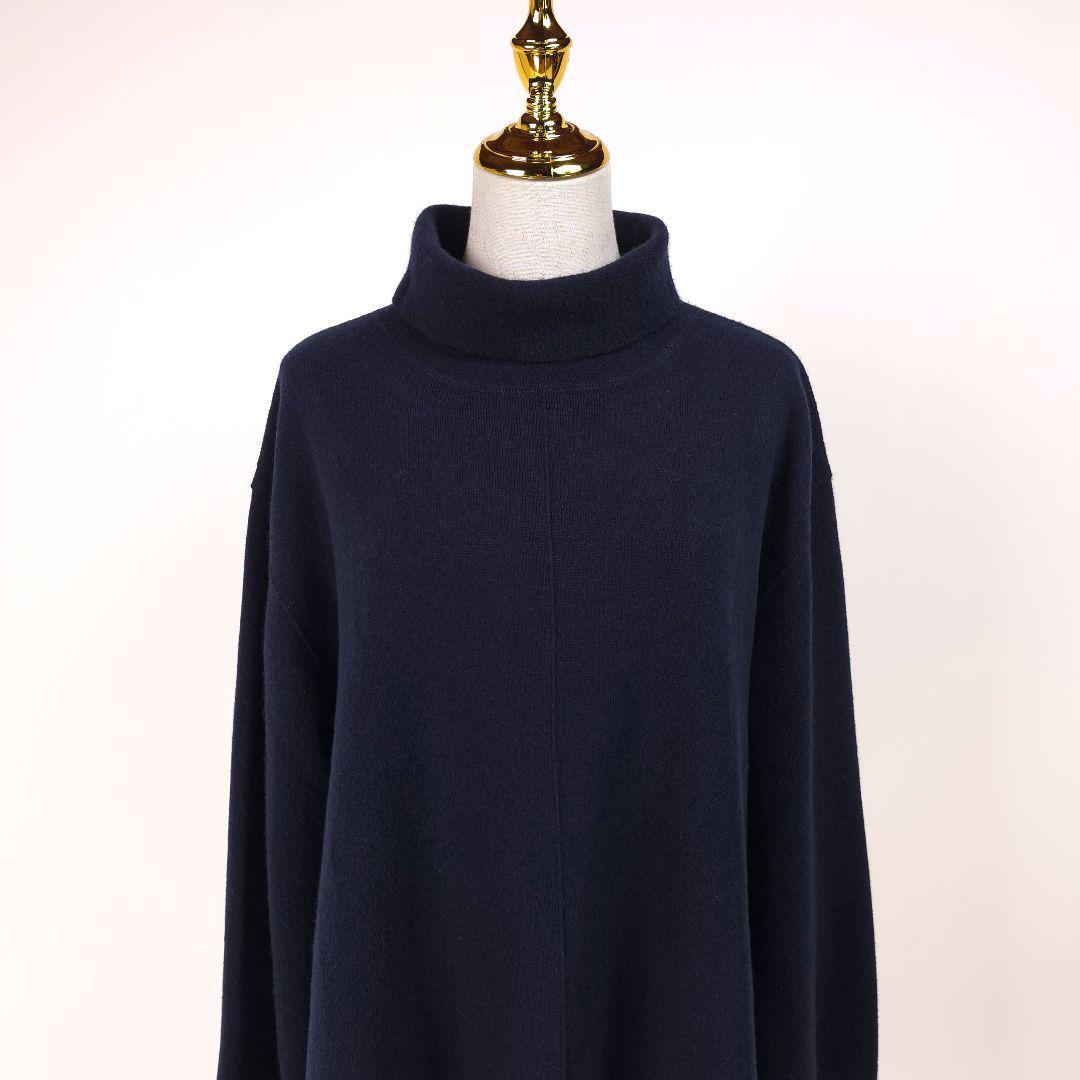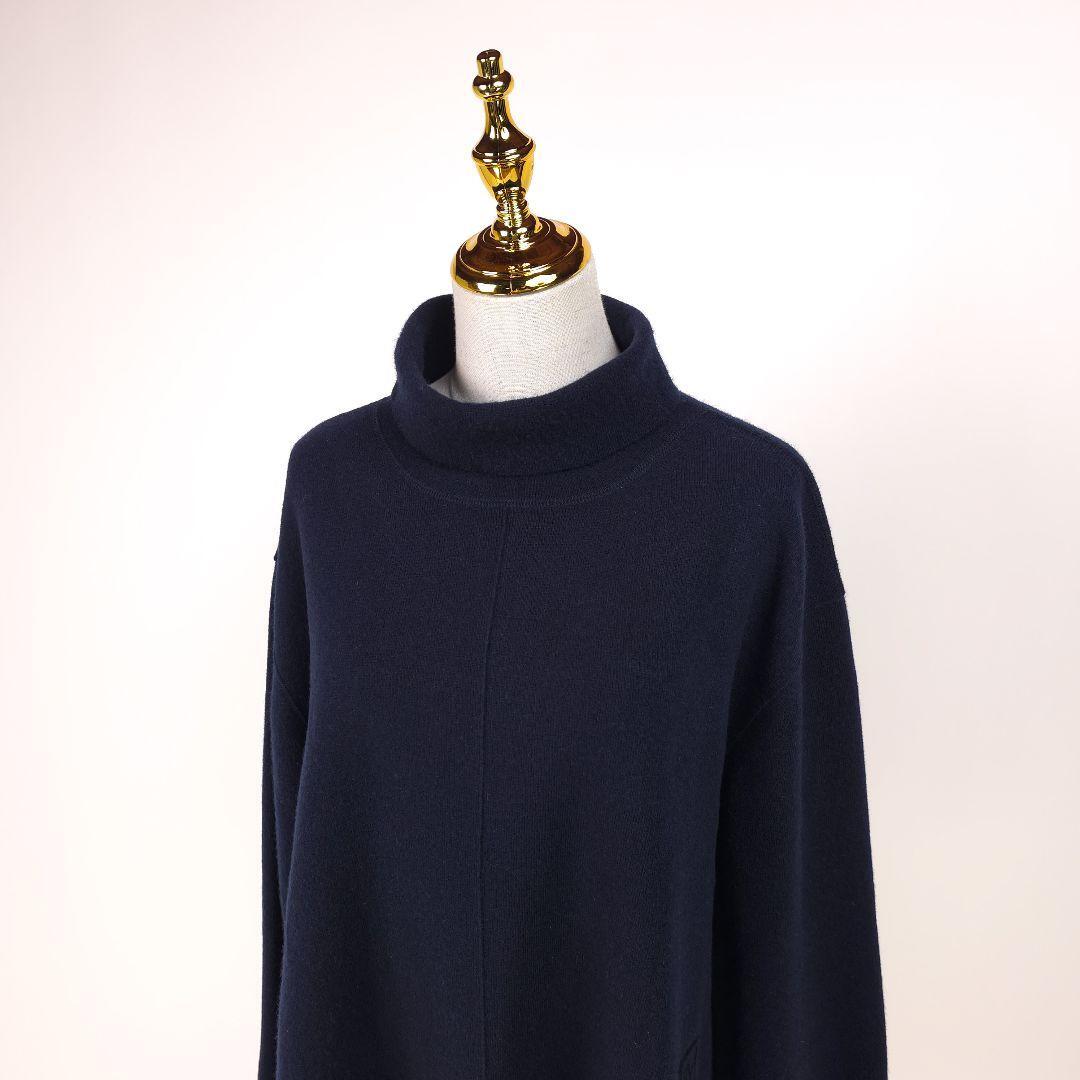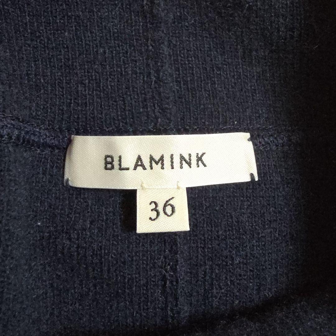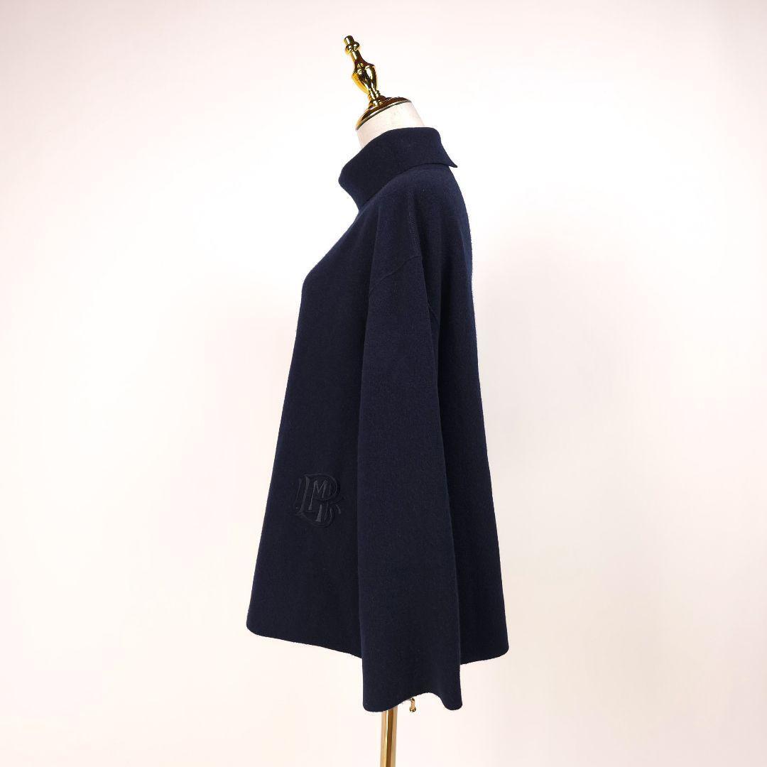 【新品同様】ブラミンク ウール カシミヤ ニット ネイビー ロゴ刺繍 ハイネック BLAMINK 2022