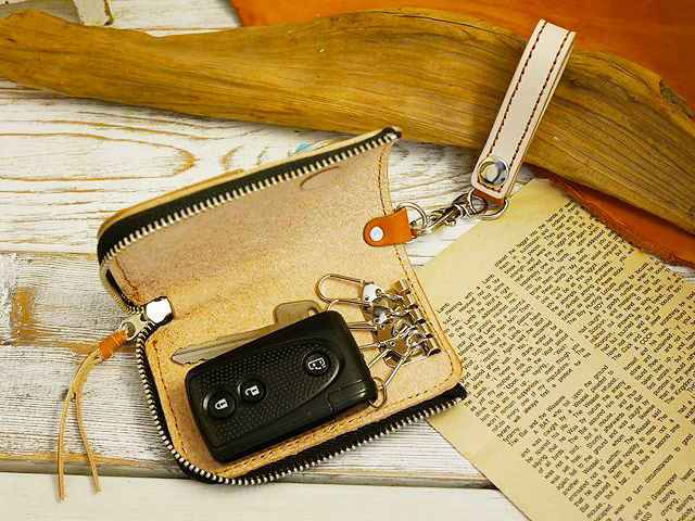 L型ジッパーなので大きく開きスマートキーなどの大きめに鍵も楽々収納