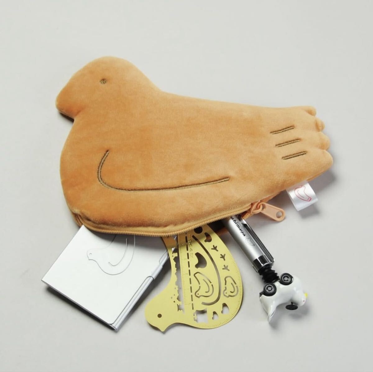 柔らかい布地で作られた可愛い鳩サブレー形のポーチです