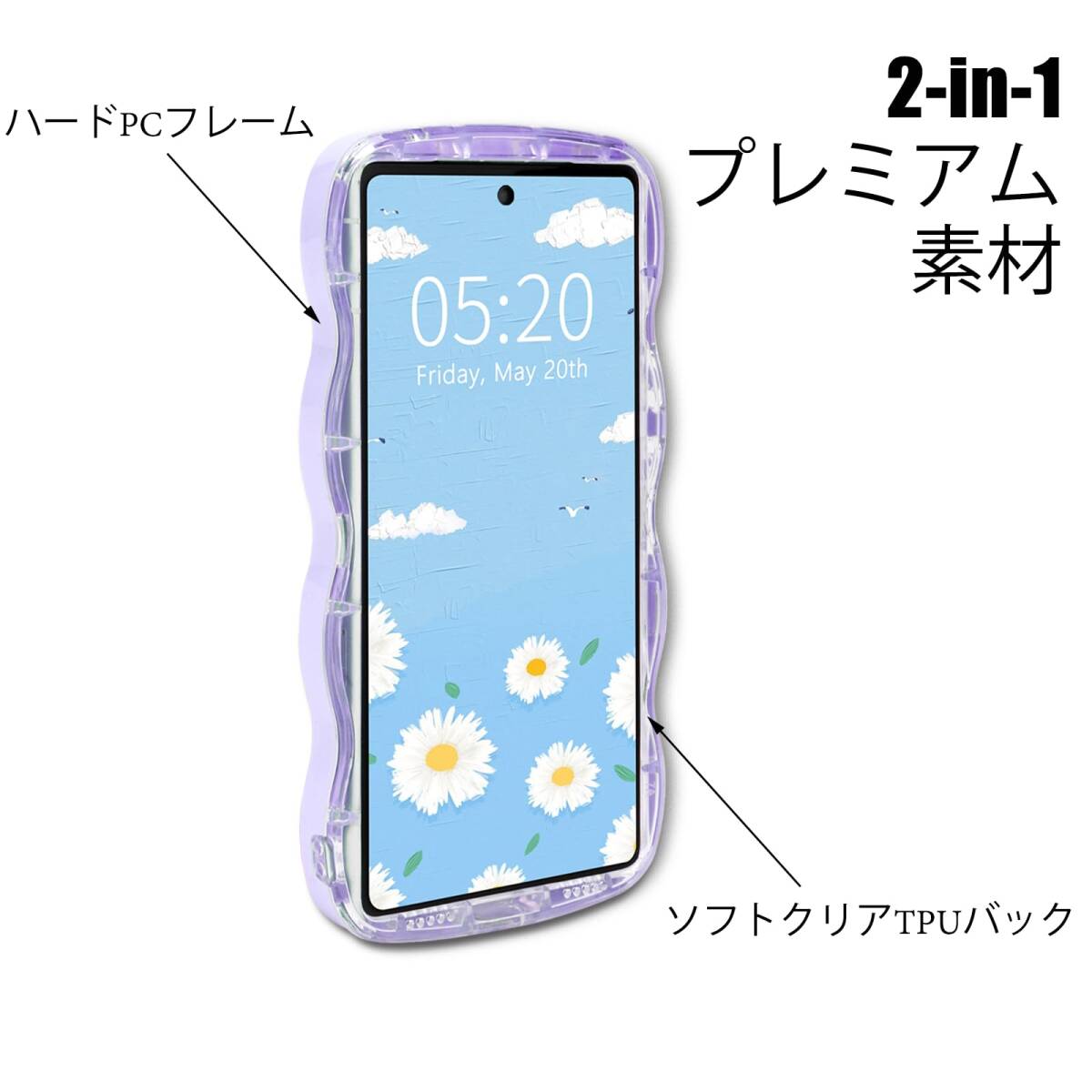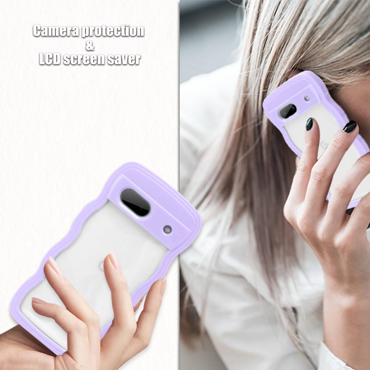 Google Pixel 7A ケース クリア ウェーブ ピクセル 7a TPU波状フレーム うねうね グーグル ピクセル7A 滑り止め スマホケースウェーブ デザイン 手にフィット 韓国 可愛い 女性用 女子向け 透明 ケースカバー 人気 落下防止 耐衝撃 ストラップホール付き グーグルピクセル7a なみなみ ワイヤレス充電対応(Google Pixel 7A-パープル)