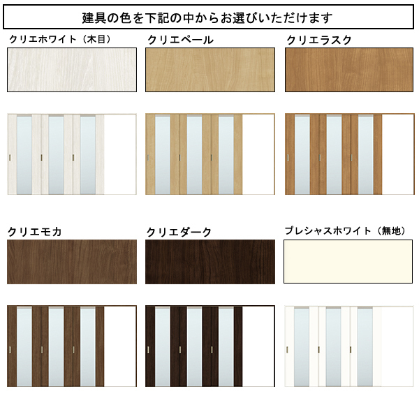 商品紹介 | ○ トステム (LIXIL) の室内建具 片引戸 3枚建 ラシッサS クリエ ○ デザインLGN ○ ノンケーシング ○ 枠の見込み:(210mmのみ) * 色をお選び頂けます * 引込勝手をお選び頂けます * 引手色をお選び頂けます * 沓摺りを4種類よりお選び頂けます。 * ガラスの種類をお選び頂けます。 * オプション・ソフトモーション(シングル又はダブル)を追加できます。 * オプション・バーハンドル(片側)に変更できます。 * 同時に複数セット、お買上げ頂けますと、送料の値引を致します。 違うサイズ(違う種類)との組合せでもOKです、是非お問合せ下さい。 |