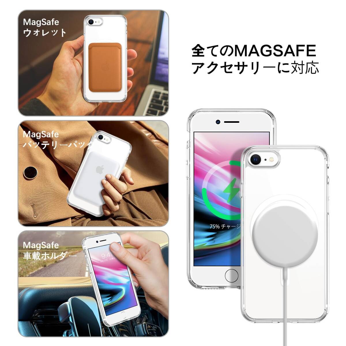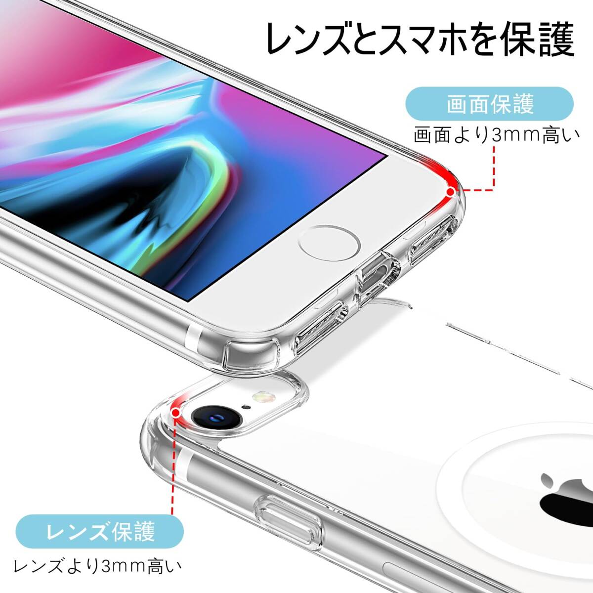 クリア ワイヤレス充電 指紋防止 MagSafe対応 レンズ保護 耐衝撃 ケース アイフォン SE2/8/7 SE3 用/iPho