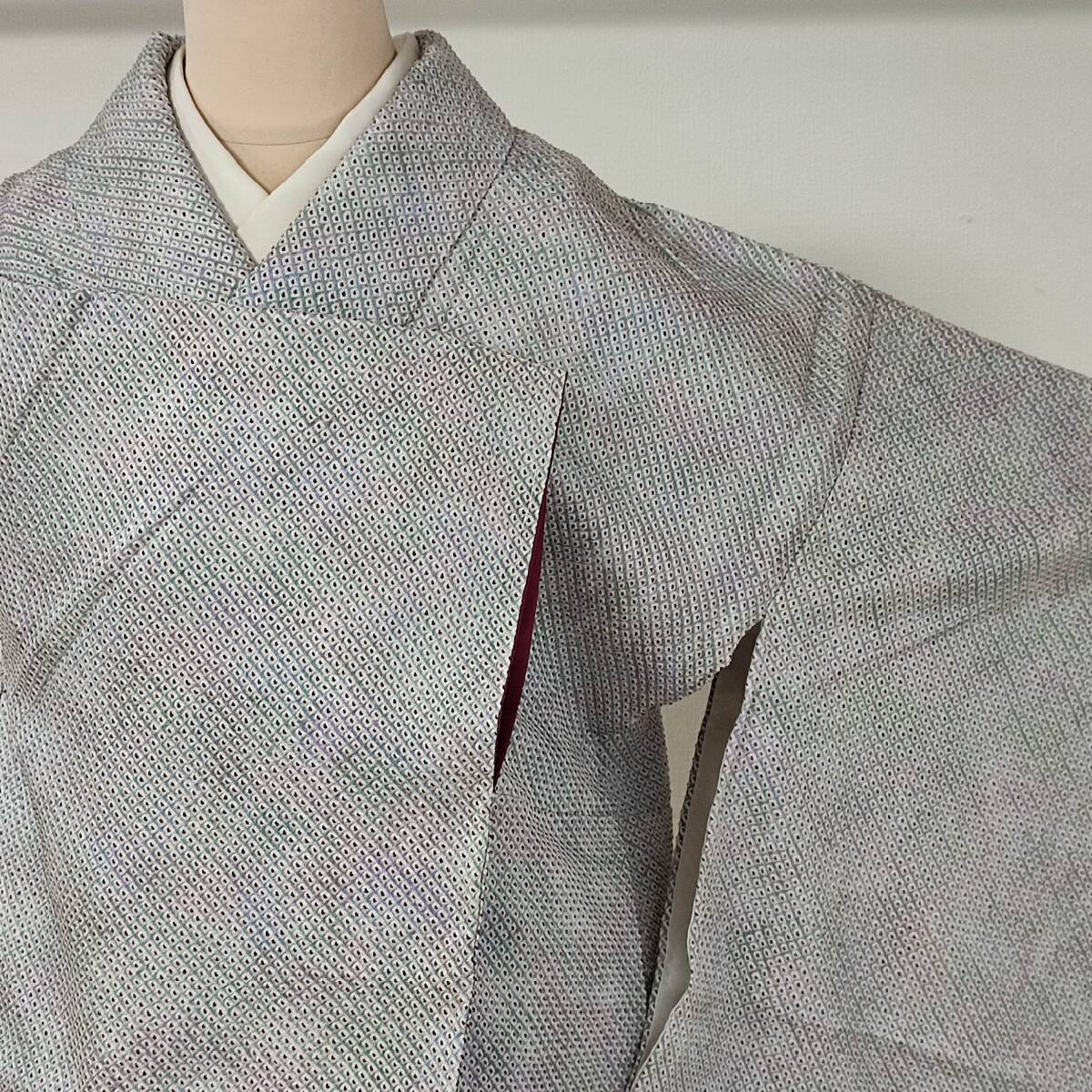 即決■着物の越田■裄66身丈164 正絹 小紋 袷 総絞り グラデーション しつけ糸付き 美品 D◇む22E01