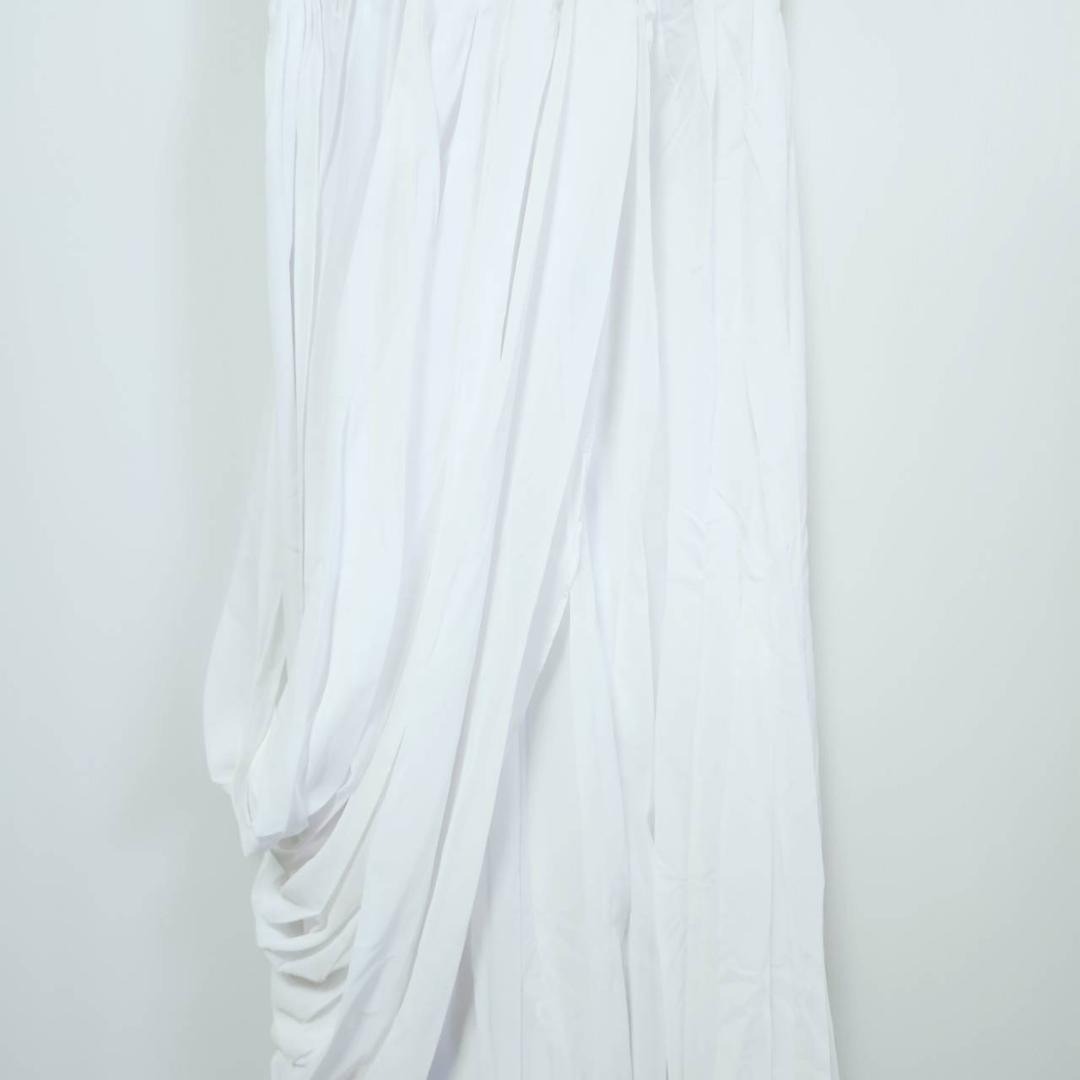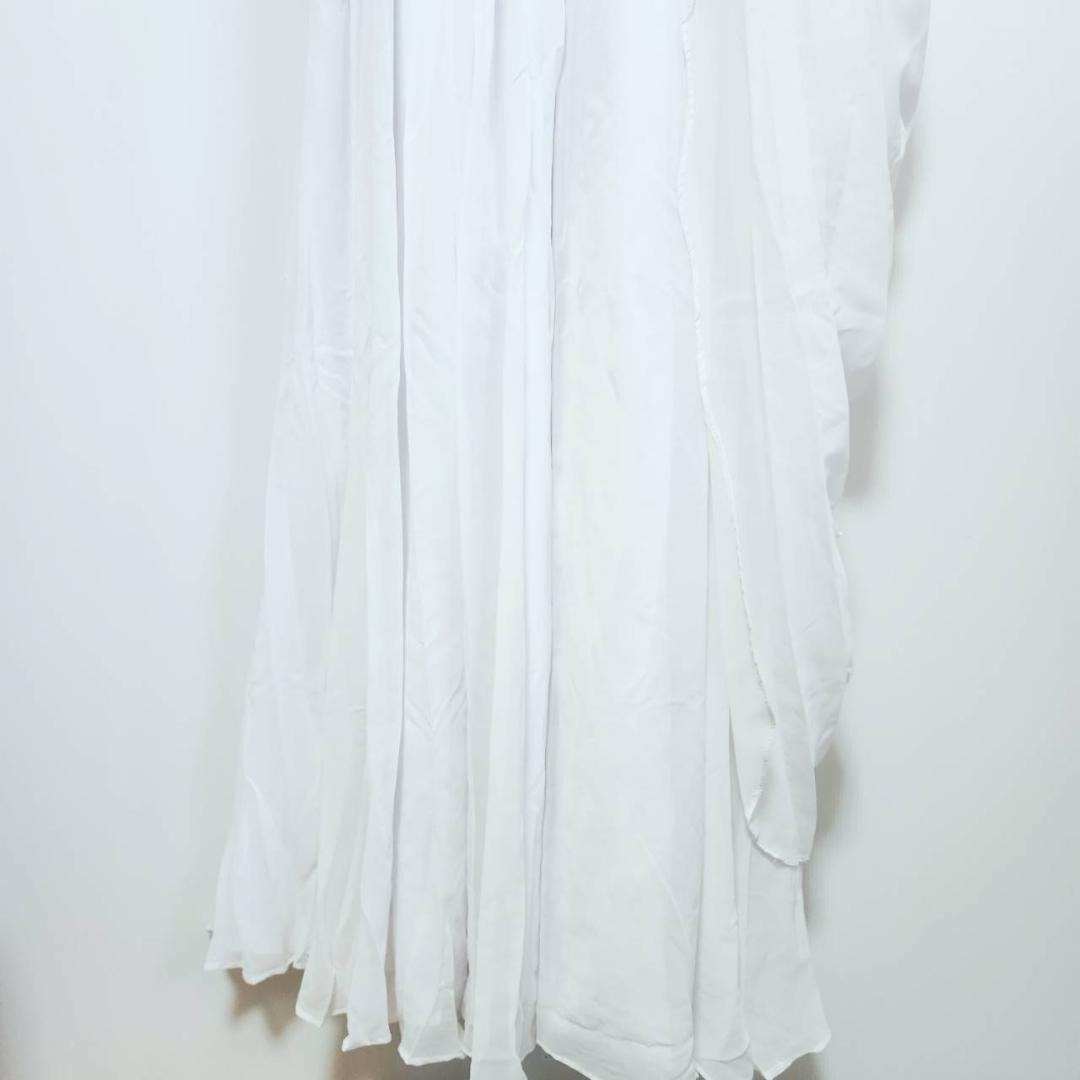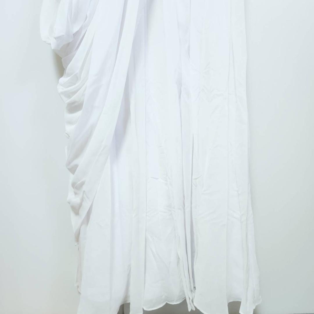 ホワイトカラーのロングドレスです。胸元にビジュー装飾が施されており、華やかな印象を与えてくれます。