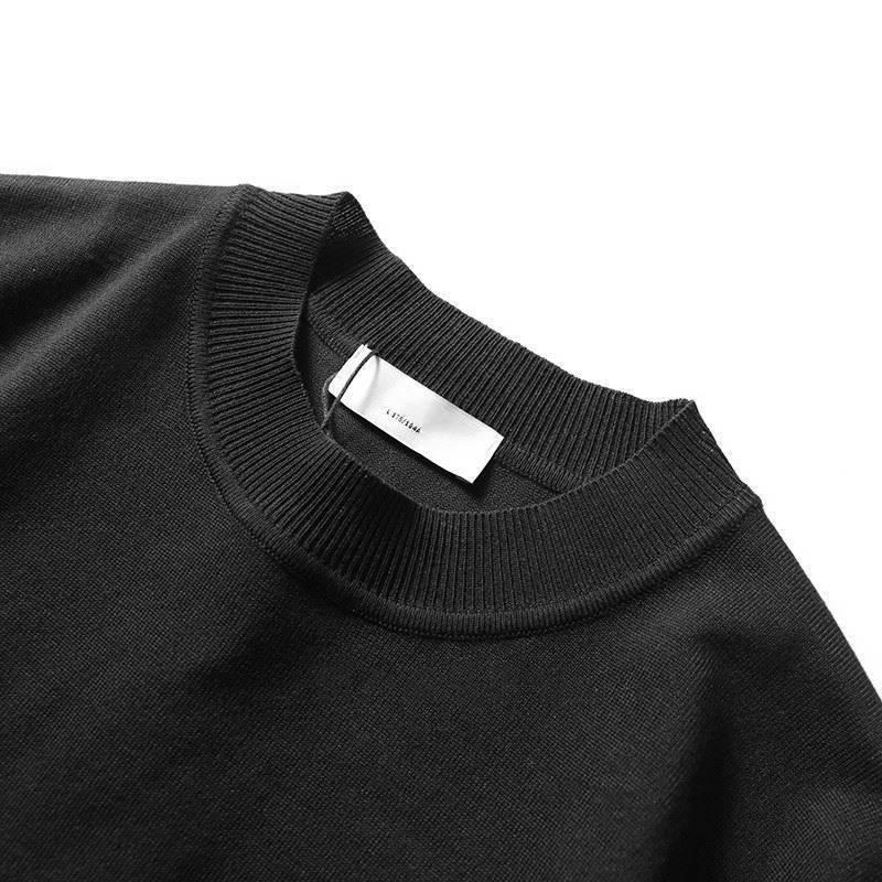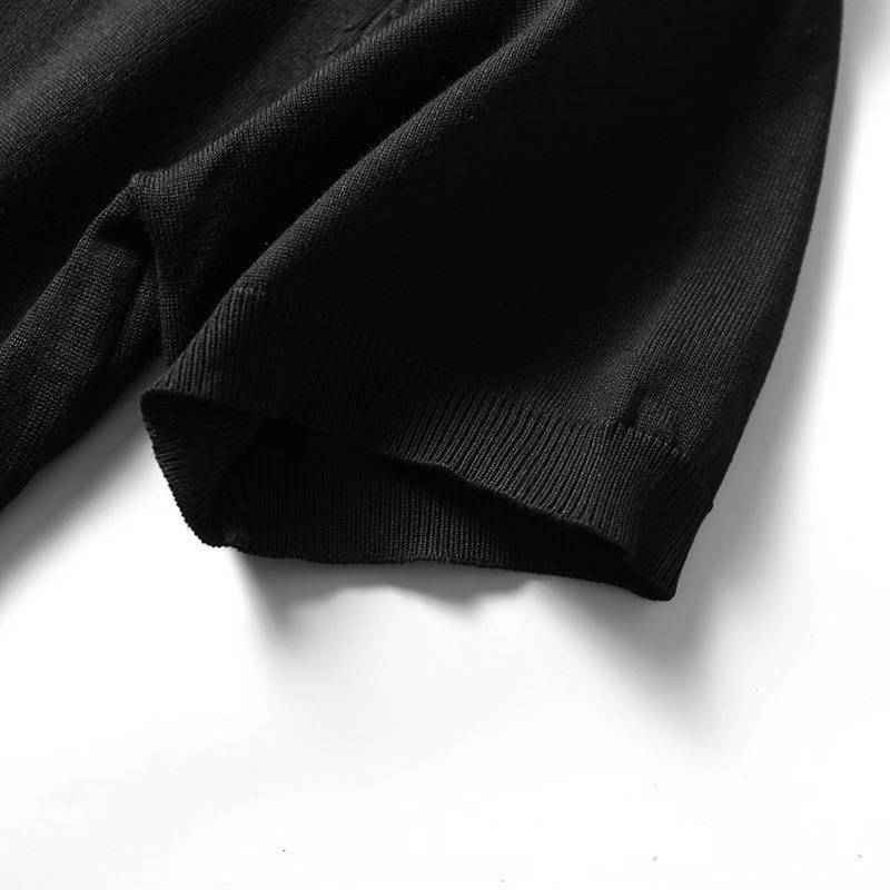 W1732-XL 新品 サマー ニット 接触冷感 半袖 Tシャツ メンズ プルオーバー 春夏 盛夏 丸首 クルーネック ハイゲージ カットソー ブラック