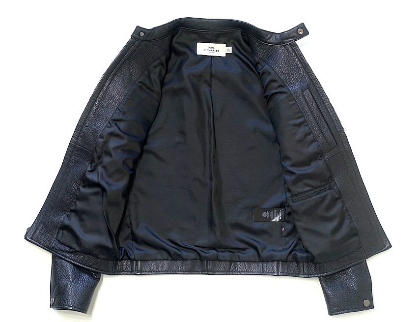 定価11万 極美品 COACH コーチ カウレザー シングル ライダース ジャケット F86594 牛革 ブラック メンズ XS バイカー ブルゾン