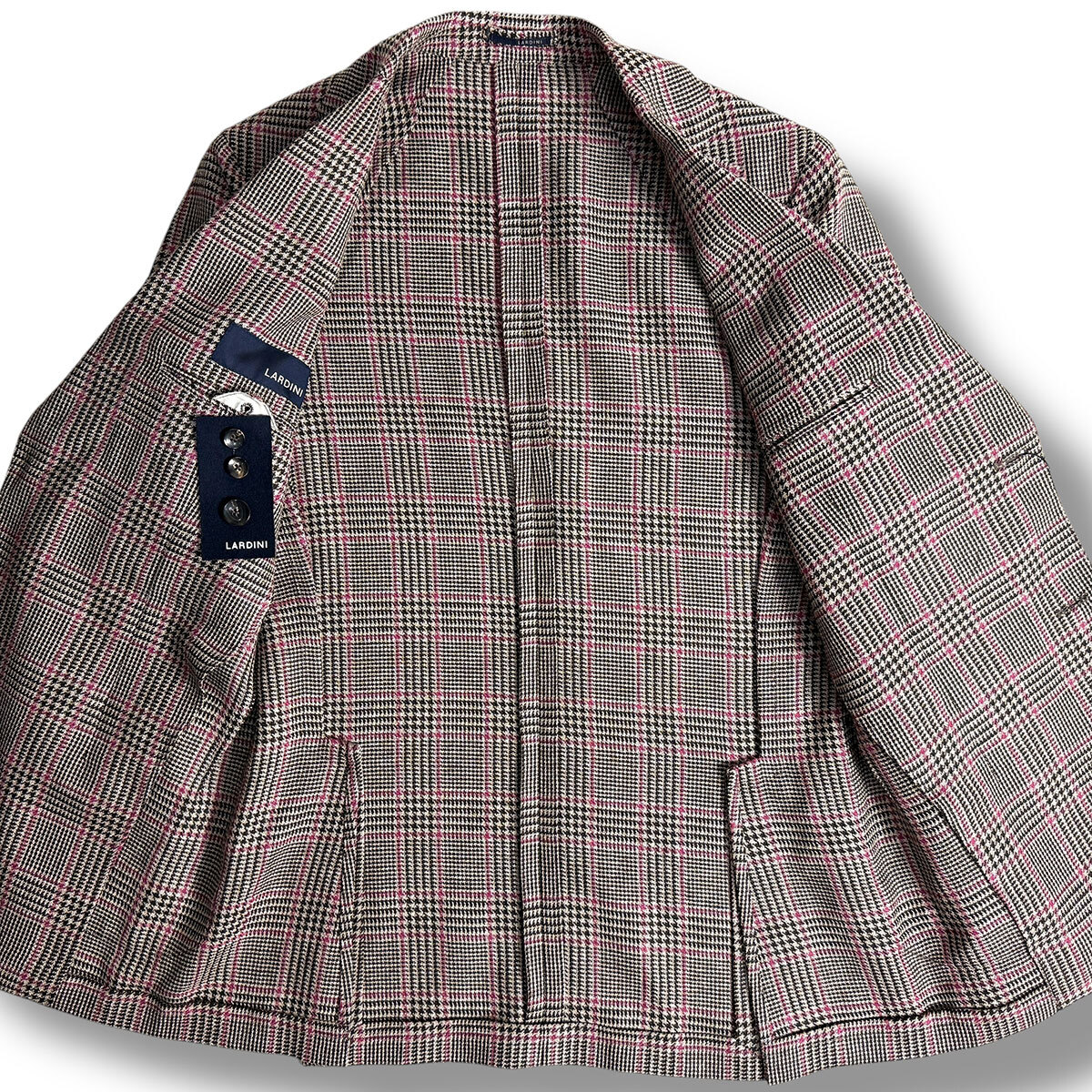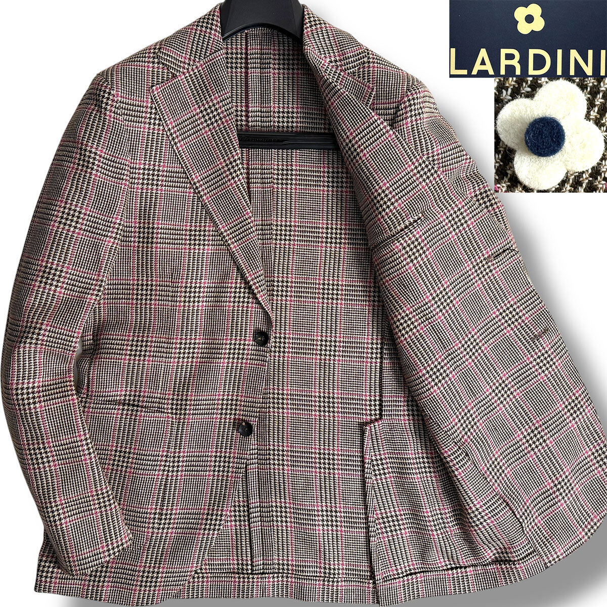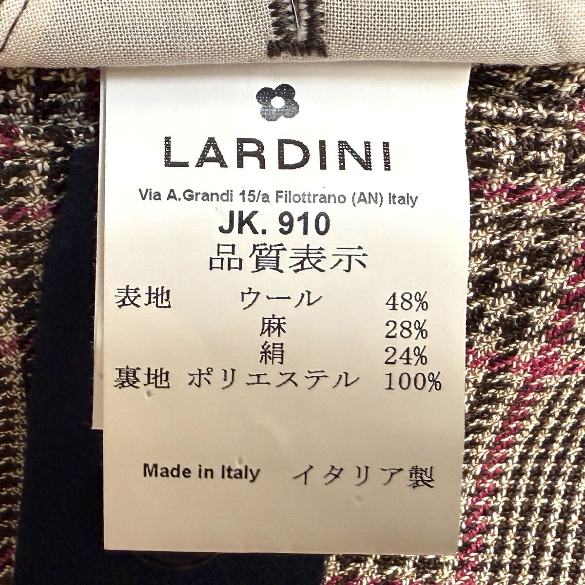 J6098 新品 ラルディーニ 21SS シルクリネングレンチェック柄サマーツイードジャケット ブラウン 46 EXCLUSIVE ENGLISH FABRIC LARDINI