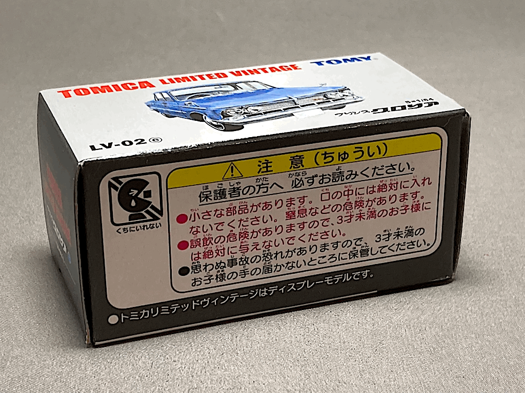 トミカリミテッドヴィンテージ LV-02e プリンス グロリア(紺/内装色替Ver.) 未開封、未使用品。製造時からの塗装の不出来やタンポの欠けなど製造上の個体差、箱の初期擦れシワ、折れ、傷、汚れ等の傷みなどがある場合がありますので予めご了承下さい。写真では分りづらいキズ等がある場合もあります。ご理解の程宜しくお願い致します。 | |||