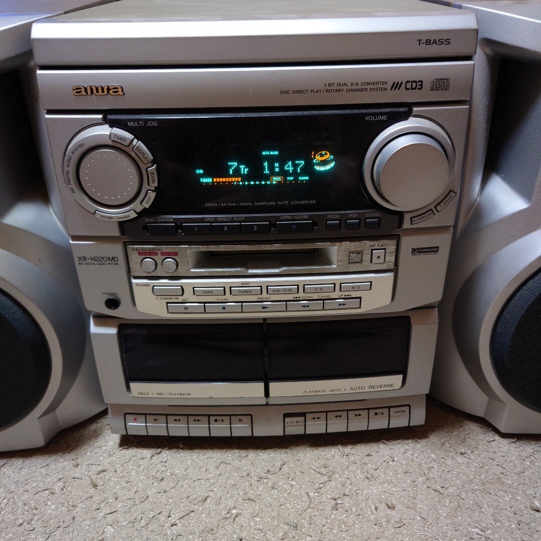 カセット MD関しては物がありませんので動作未確認になります。CDに関しては聴けますがオープントレーボタン押すと出てきますが閉める時手でて閉めないと閉まりません。