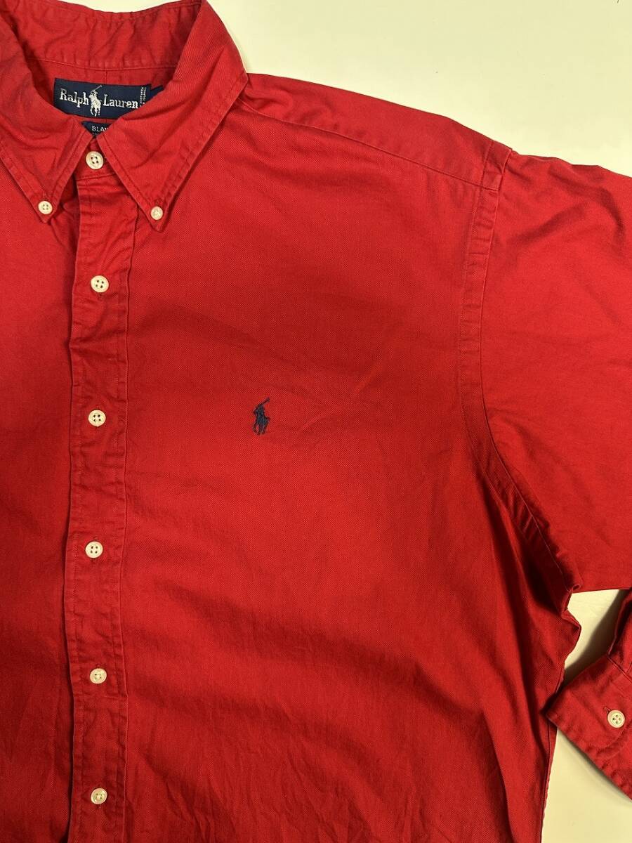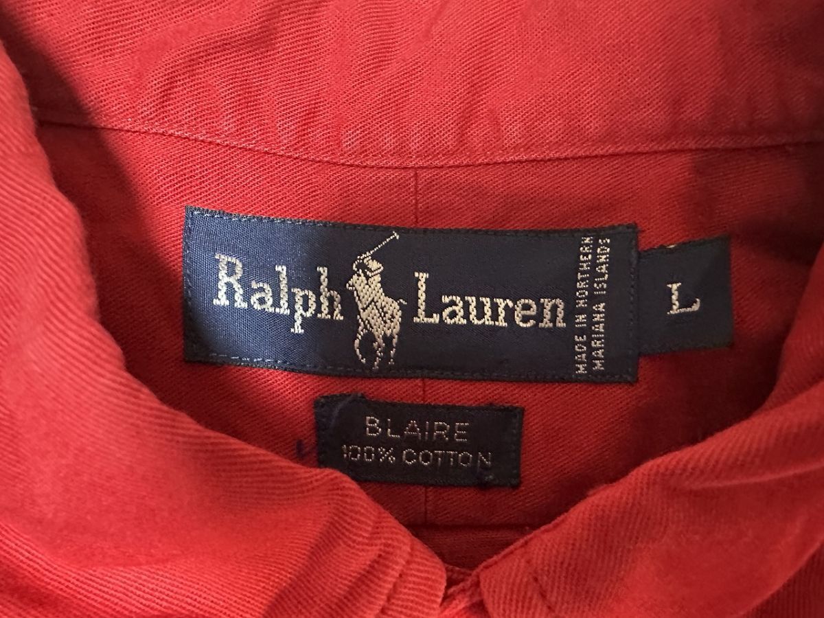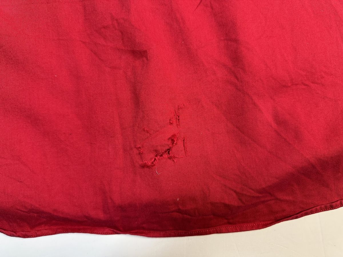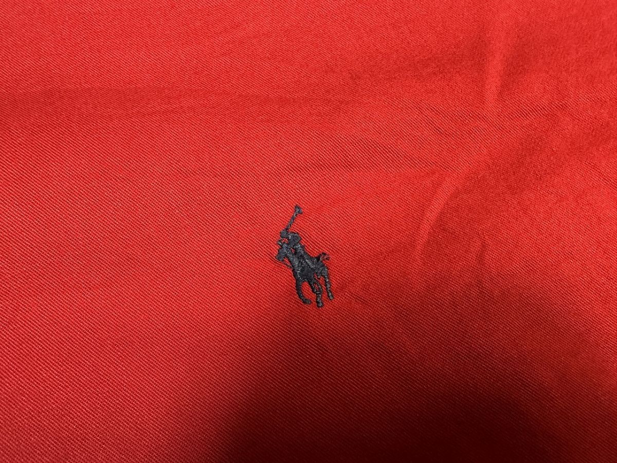 ●US USED ダメージありUS古着 Ralph Lauren ラルフローレン 綿シャツ ロゴ刺繍 長袖シャツ レッド赤【L】コットン