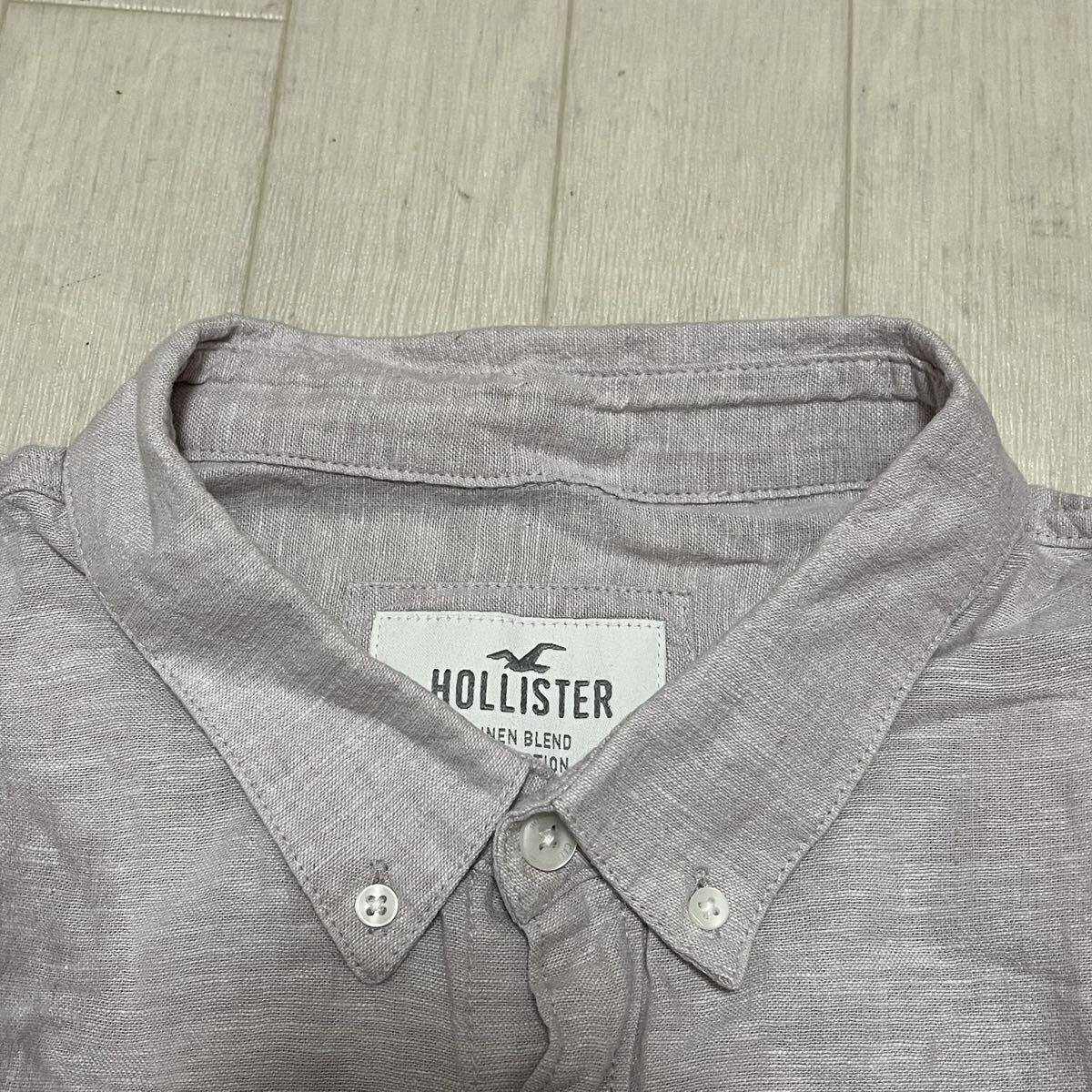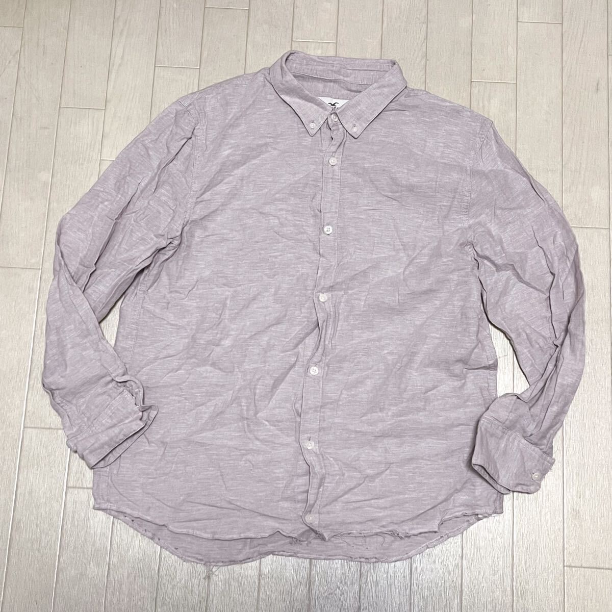 和847★ HOLLISTER ホリスター リネン混 ボタンシャツ ボタンダウン 長袖 M ライトパープル メンズ