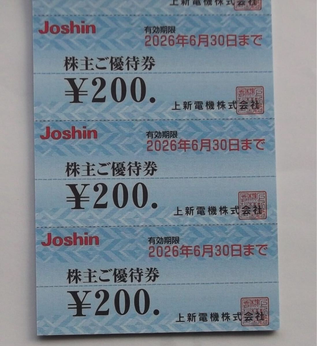上新電機(Joshin)の株主優待券6,000円分です。