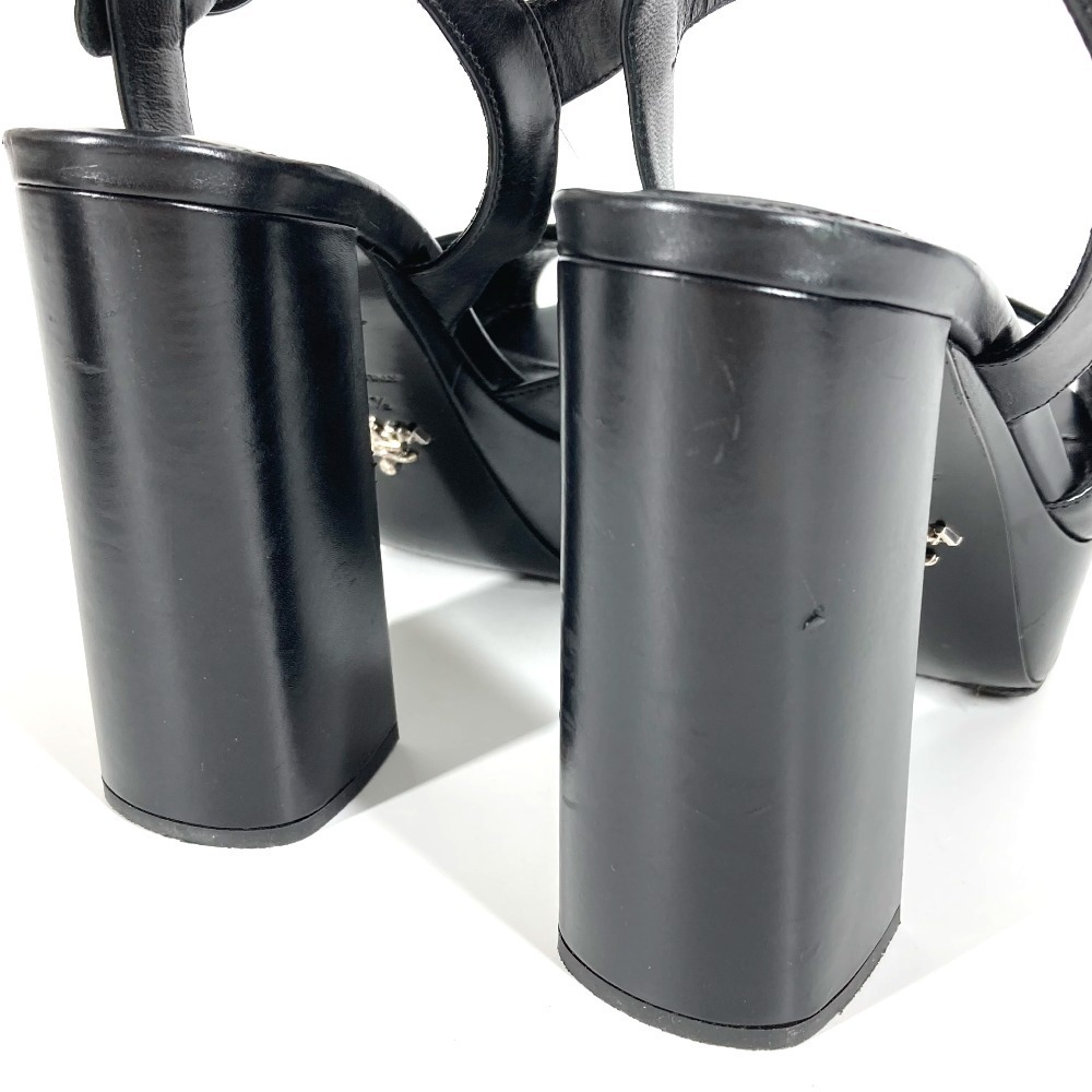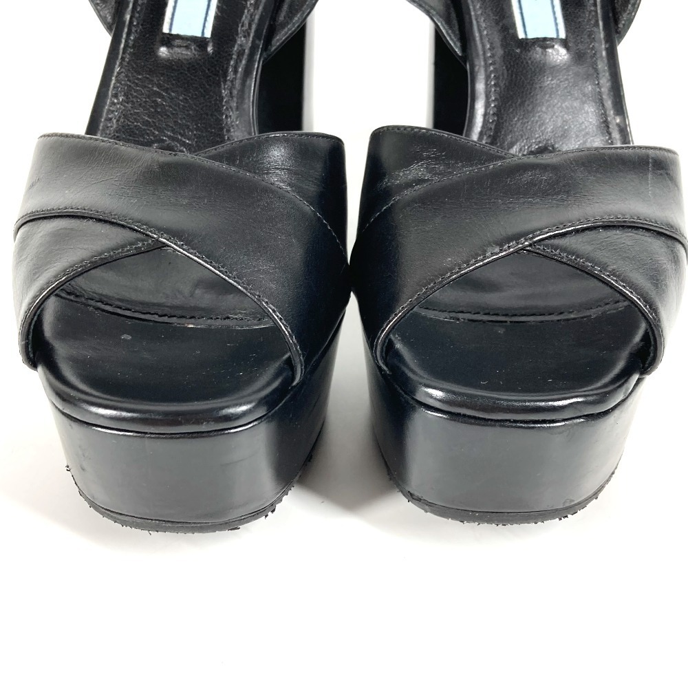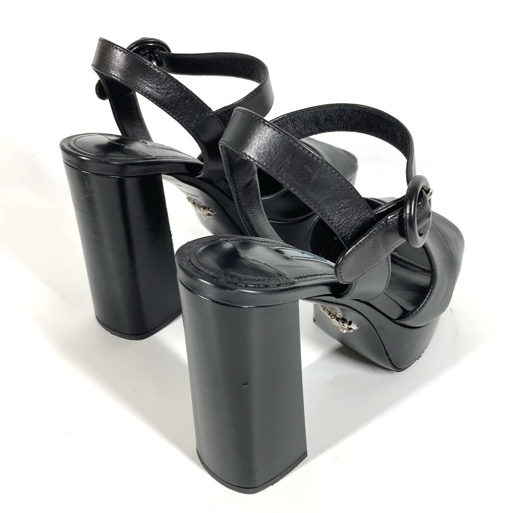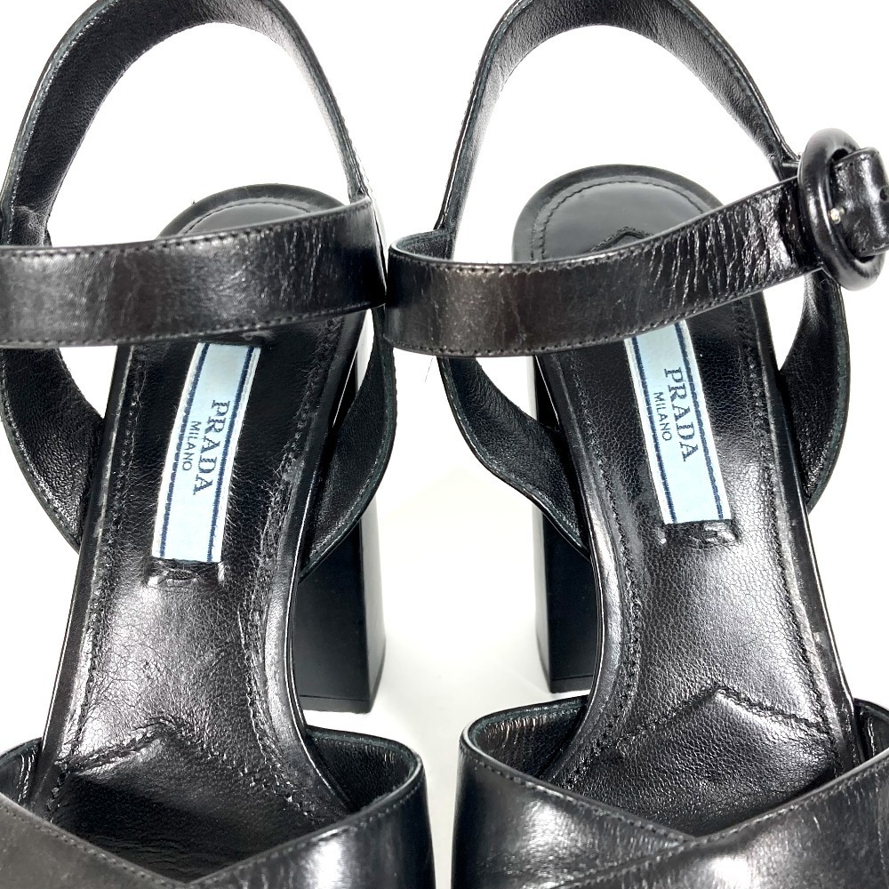 PRADA プラダ ベルト オープントゥ ヒール 靴 シューズ サンダル ブラック レディース【中古】