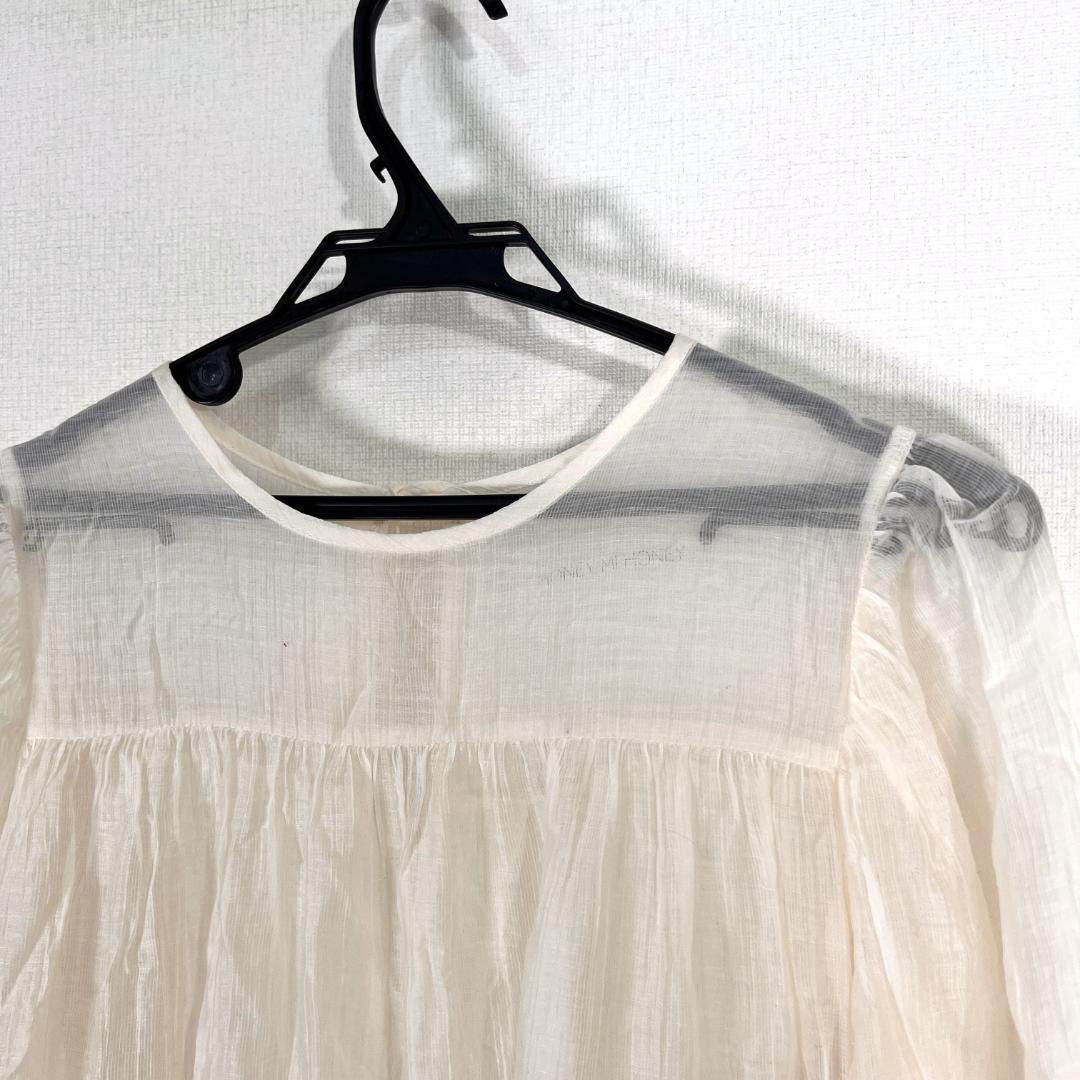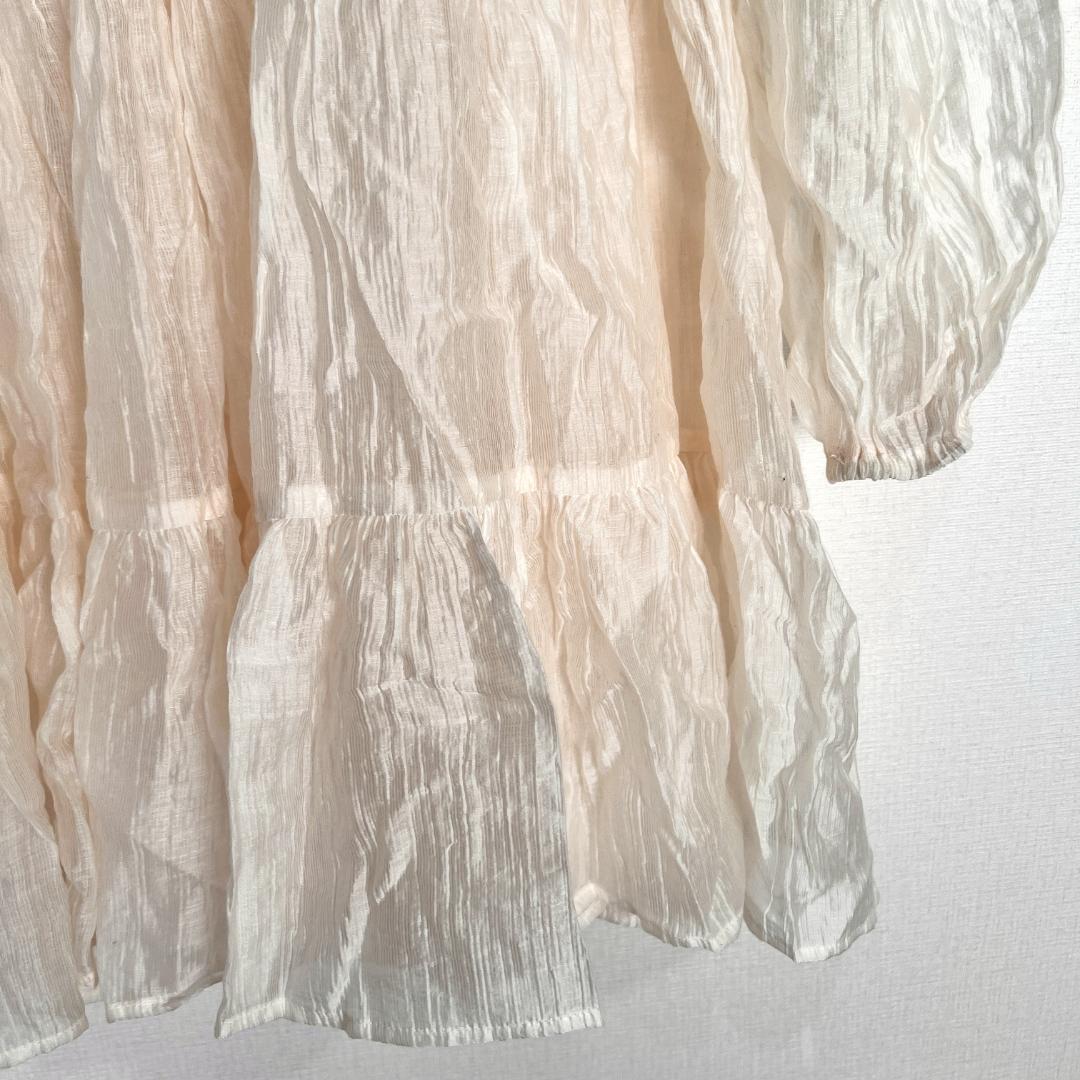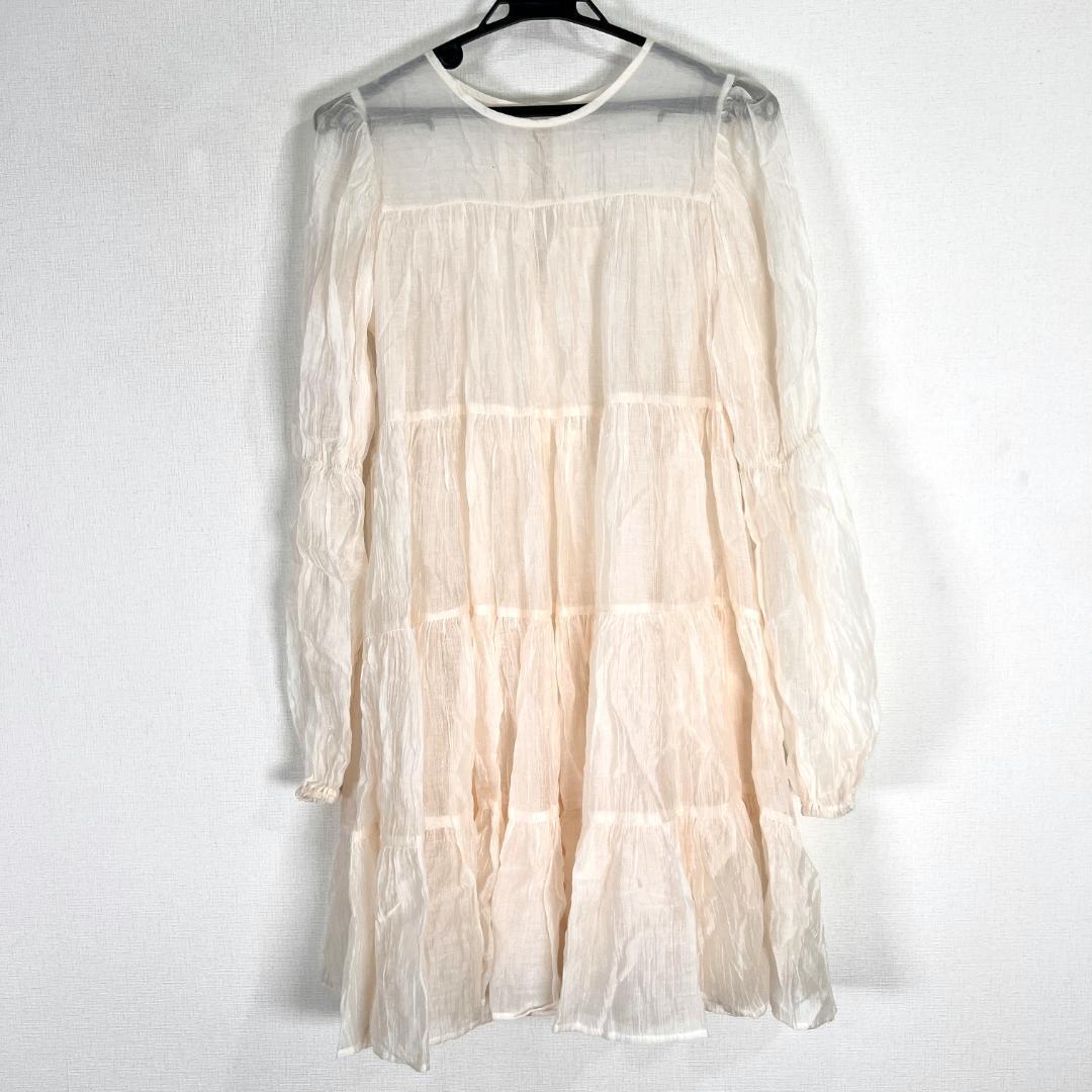 レディースのアイボリー系の長袖 シアー ティアード ワンピースです。裏地等はありません。パンツスタイルに合わせてもかわいいです。