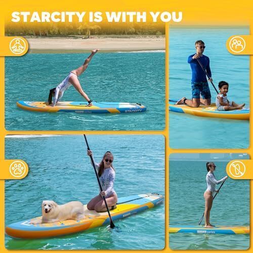 【熱シールによる革新的なデザイン】スターシティのパドルボードは、スマートなデザインと熱シール技術を備えています。これらのボードは、スタイリッシュで、空気を漏らさず、機能的にも高度です。ユニークな3フィンシステムとPVCの滑り止めパッドにより、あらゆる水域で優れたバランスを保証します。さらに、カスタムパターンにより、水上で際立った存在となります。