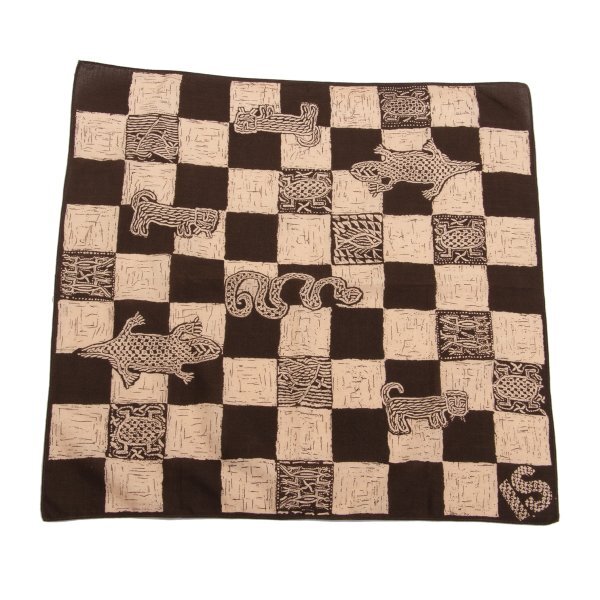 イッセイスポーツISSEY SPORT アニマルブロックチェックプリントハンカチ 茶ベージュ |