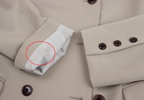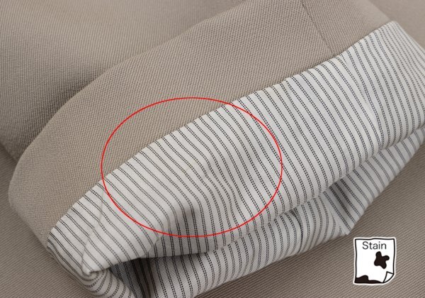 | コンディション | 肩パッドあり。右袖裏に薄シミ、裏地に変色があります(写真参照)。その他目立ったシミ、汚れ、ほつれ等なくいい状態です。クリーニング済み。 |