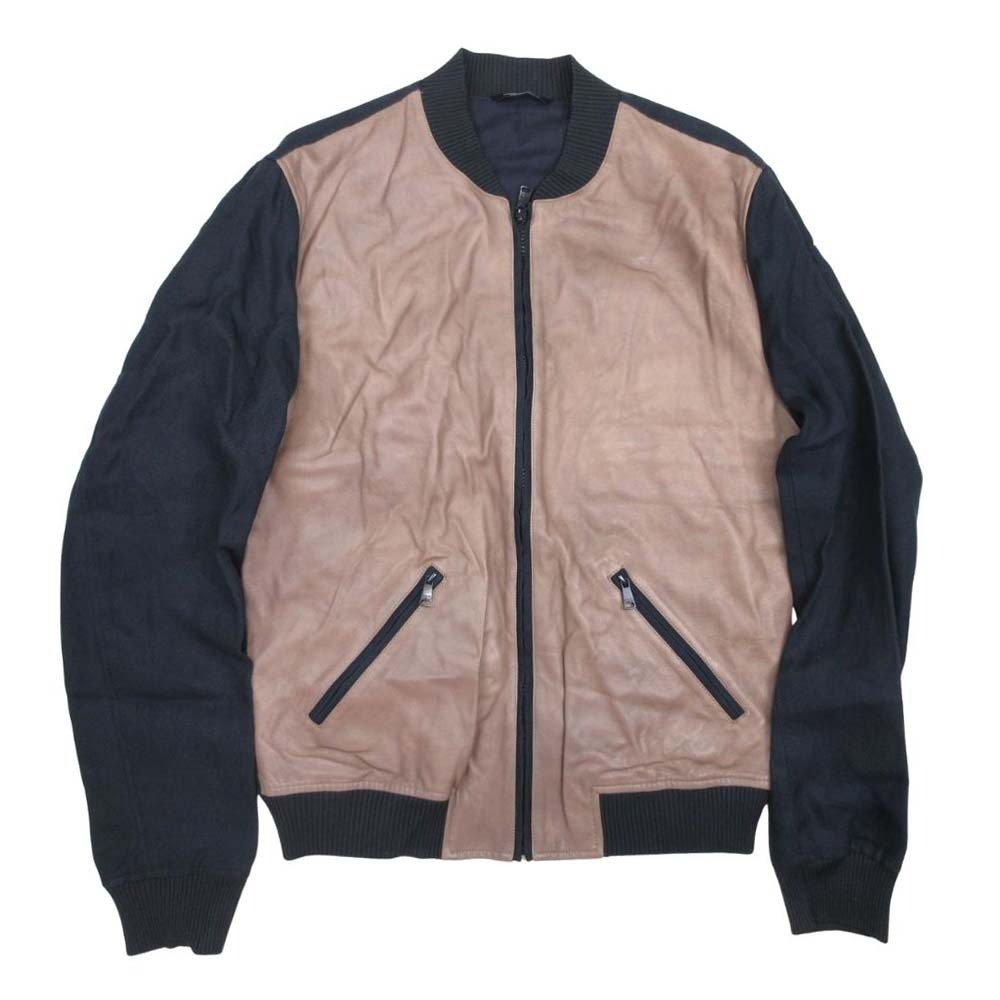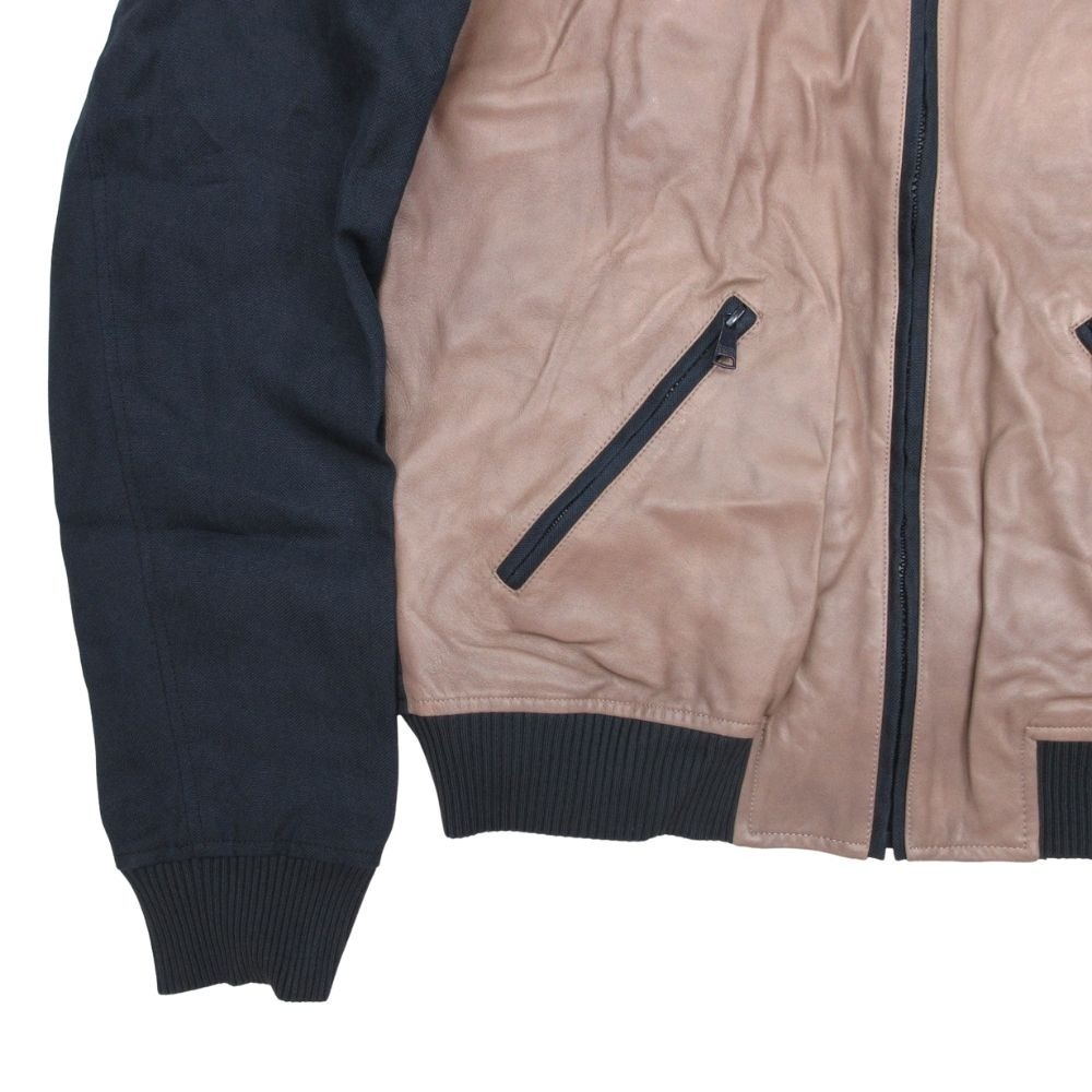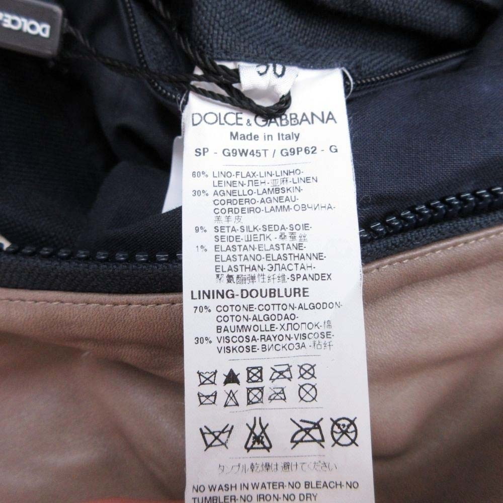 商品名:DOLCE&GABBANA ドルチェアンドガッバーナ 羊革 ラムレザー リネン ブルゾン ジャケット 50 ブラウン ネイビー