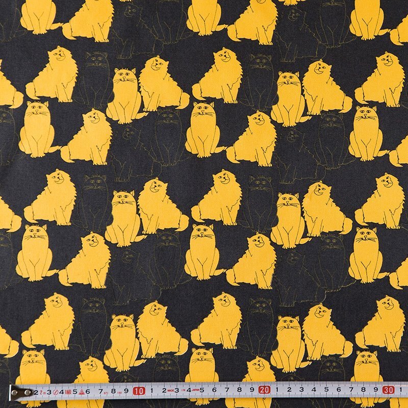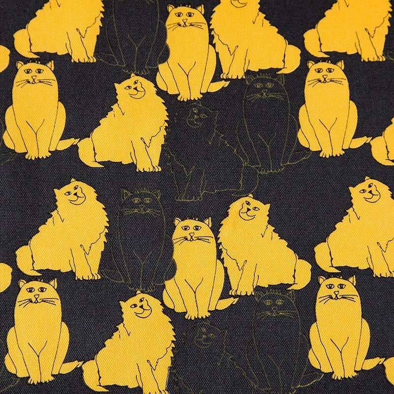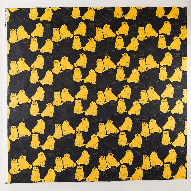 黄色と黒色のネコを地色の黒を背景に描いています。