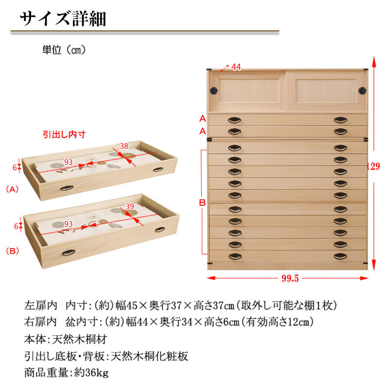 ■本体/10段(約)幅99.5×奥行44×高さ84cm 上置:(約)幅99.5×奥行44×高さ45cm(奥行は取っ手を含んでおりません。取っ手を含むと2~3cmほど長くなります)