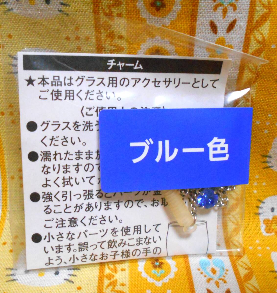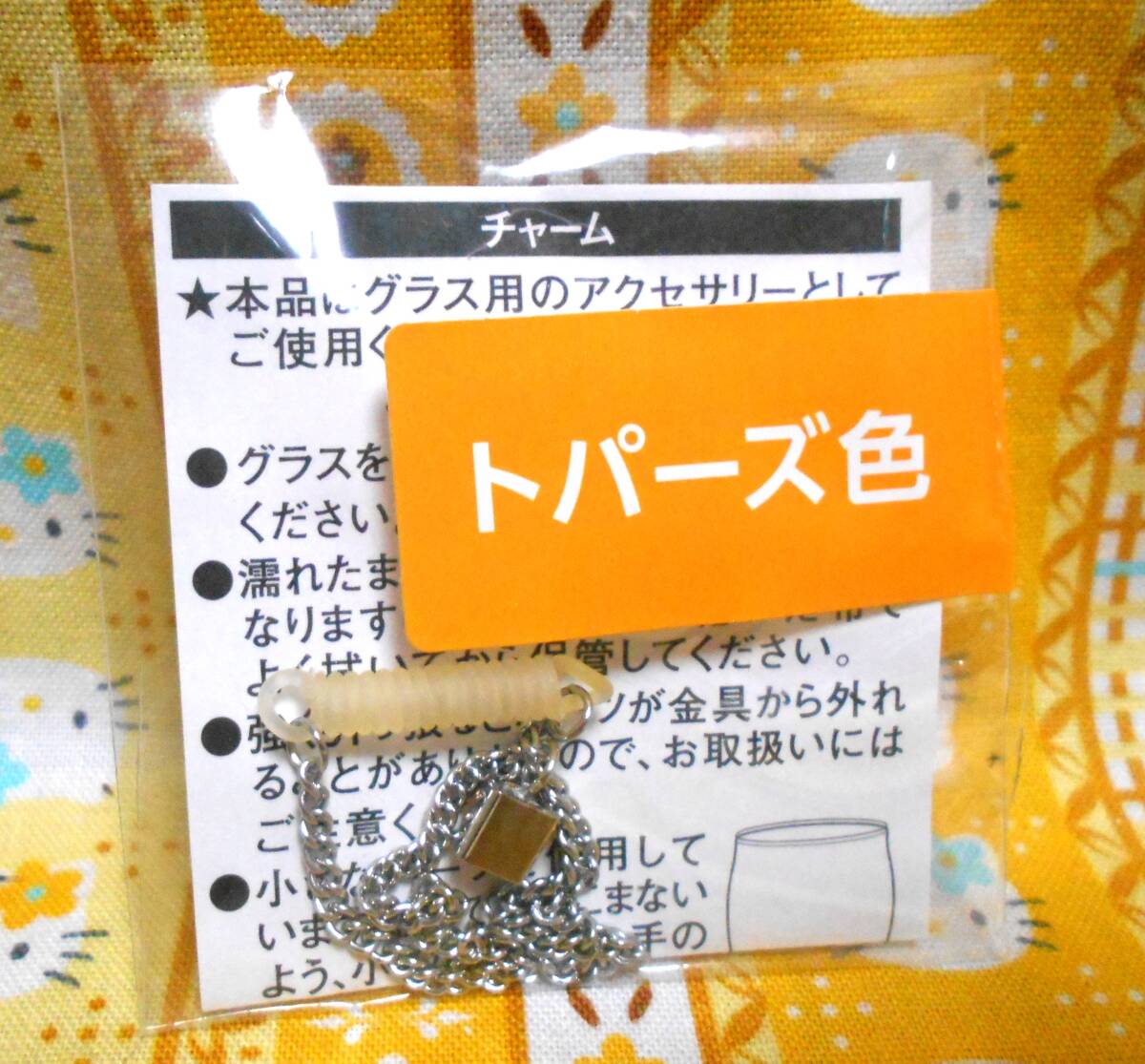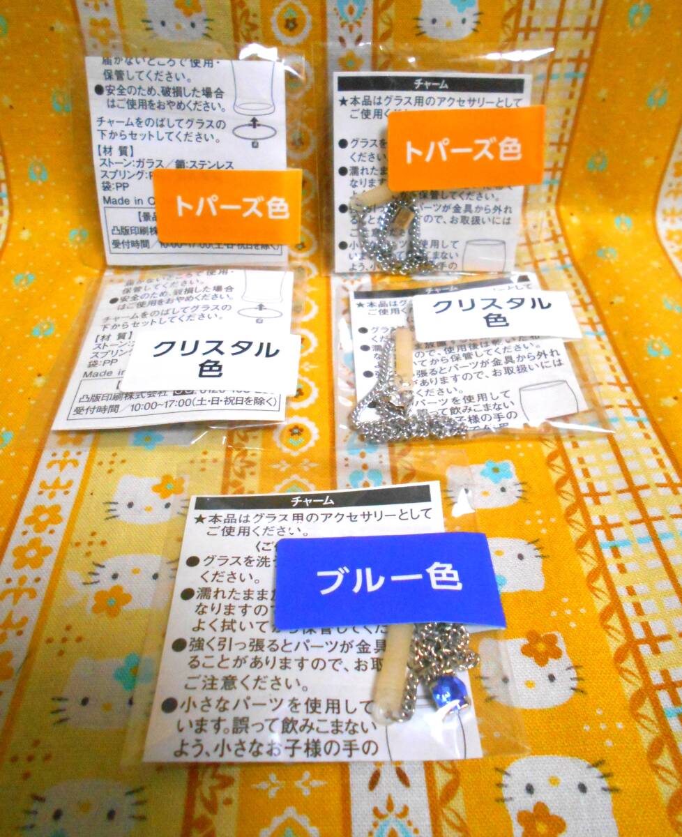 ♪グラスチャーム新品未開封3色6個セットクリスタル&ブルー&トパーズバネチェーンチャーム