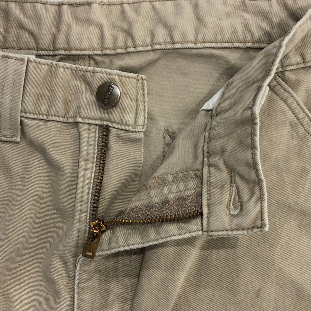 | 【商品管理番号】 V2661 【ブランド】 Carhartt/カーハート 【サイズ】 W36 L32 【実寸サイズ】 ウエスト:約85cm 股上:約30cm 股下:約77cm わたり幅:約35cm 裾幅:約22cm 【主な素材】 表地 : コットン 【色】 ベージュ 【仕様】 ペインターパンツ 【状態】 汚れ:全体、裾、股、ヒップ、もも | |||