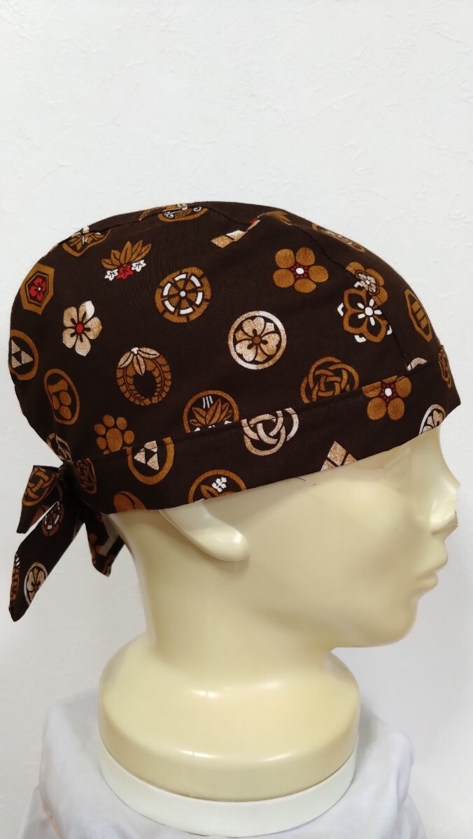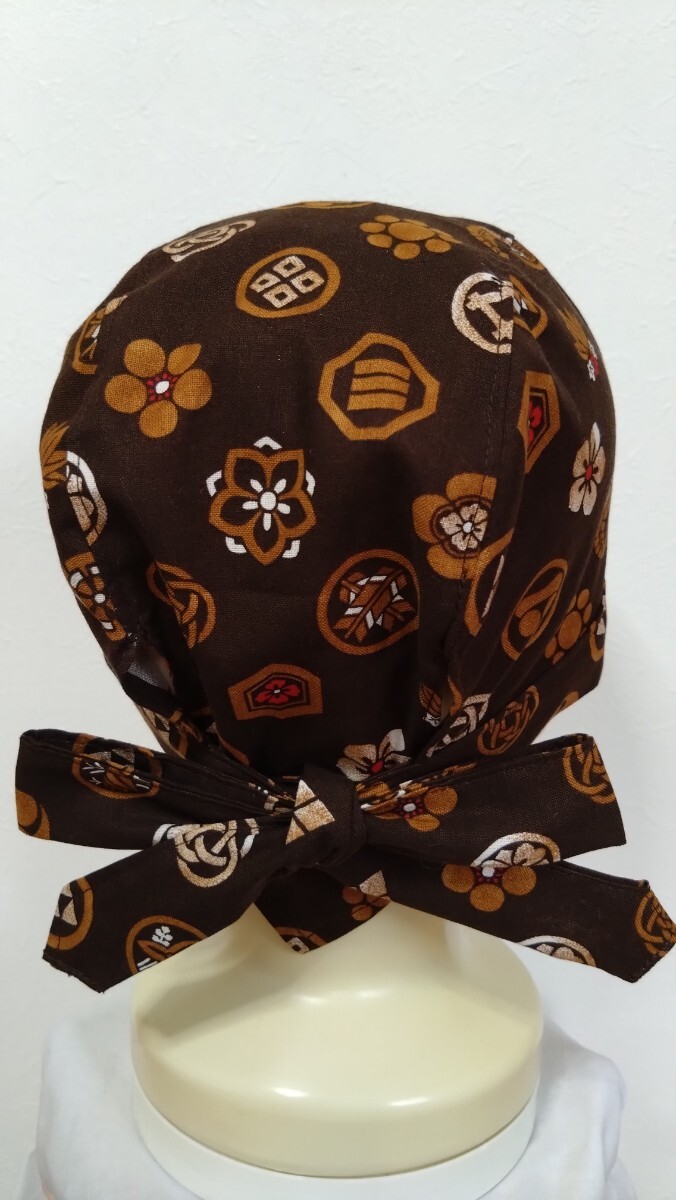 短★バンダナキャップ★ハンドメイド 和柄 家紋 古典 茶