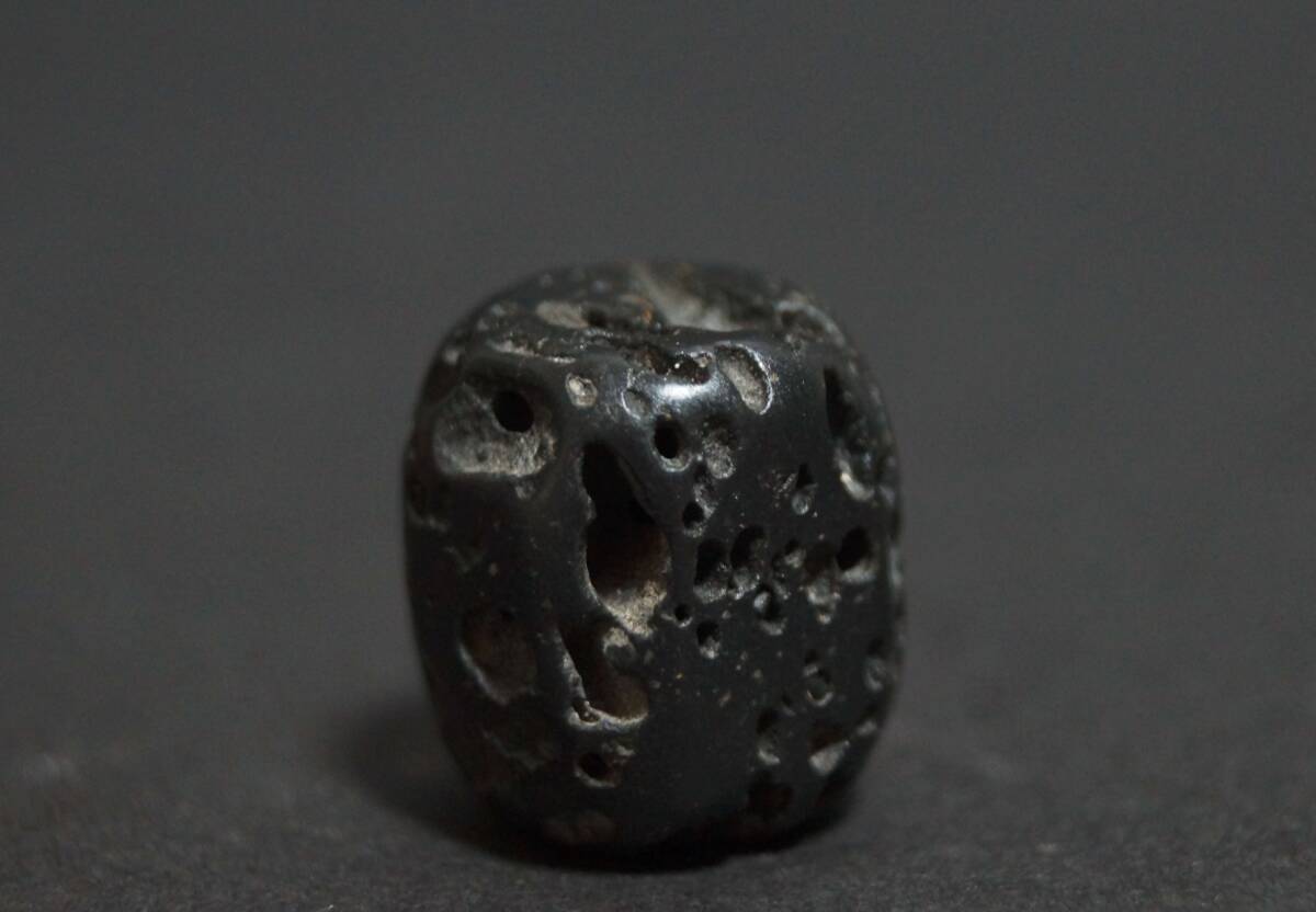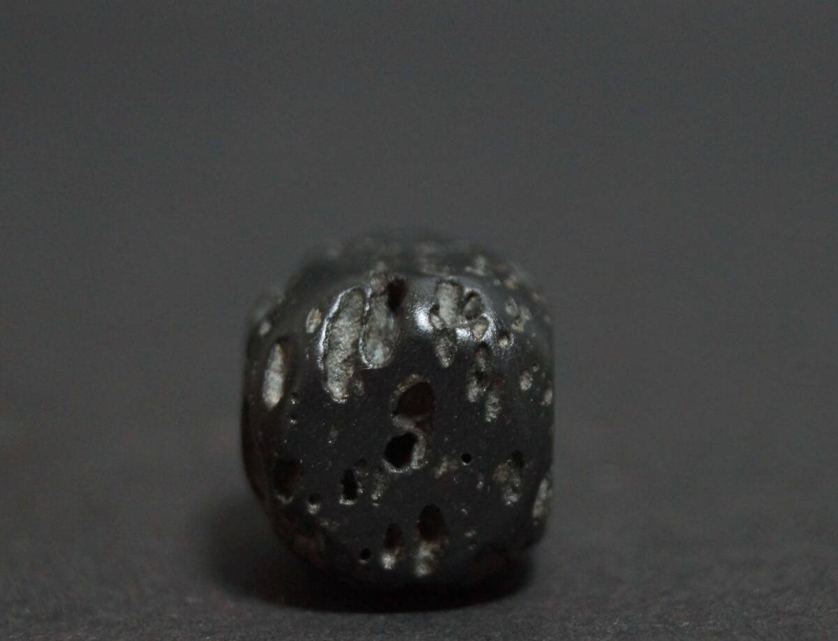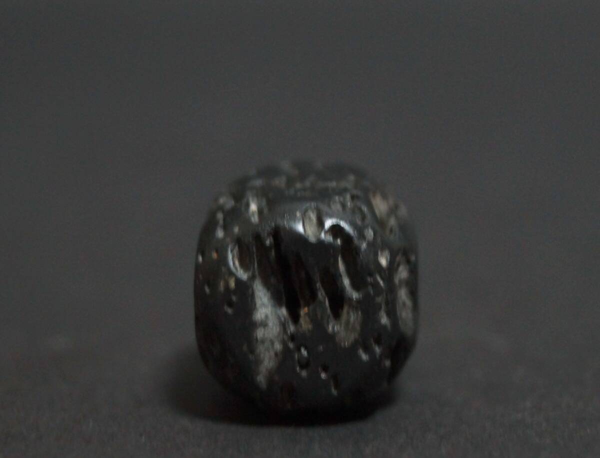 【寂】オールド ブラックラバ 天然溶岩 面取根付 緒締玉 提げ物 ビーズ 装飾品 長さ1.9cm☆美しい石目☆s70923