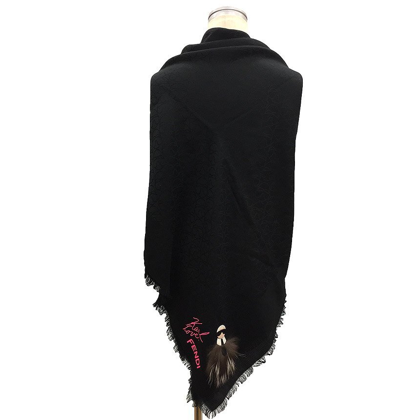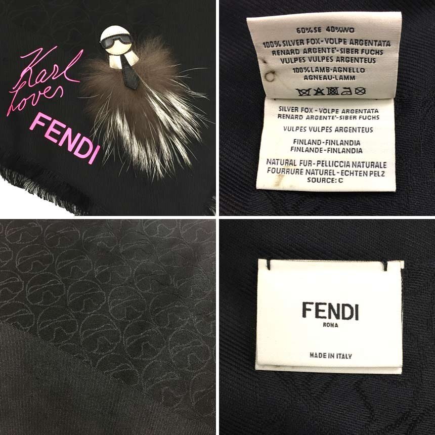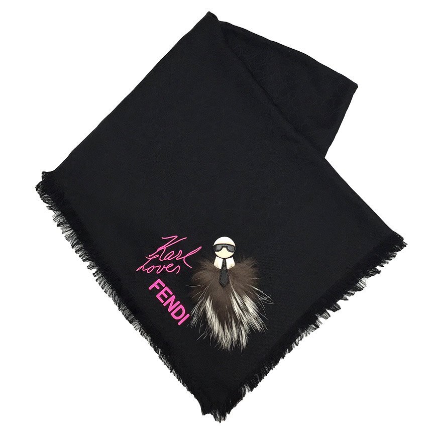 マフラー モンスター カール・ラガーフェルド karl love FENDI FXT069 大判ストール ショール シルク×ウール シルバーフォックスファー |