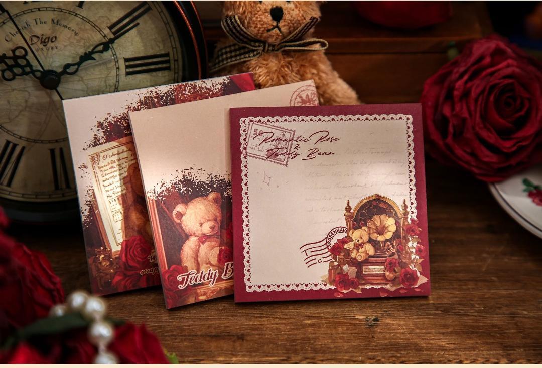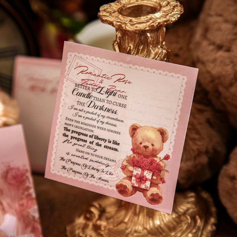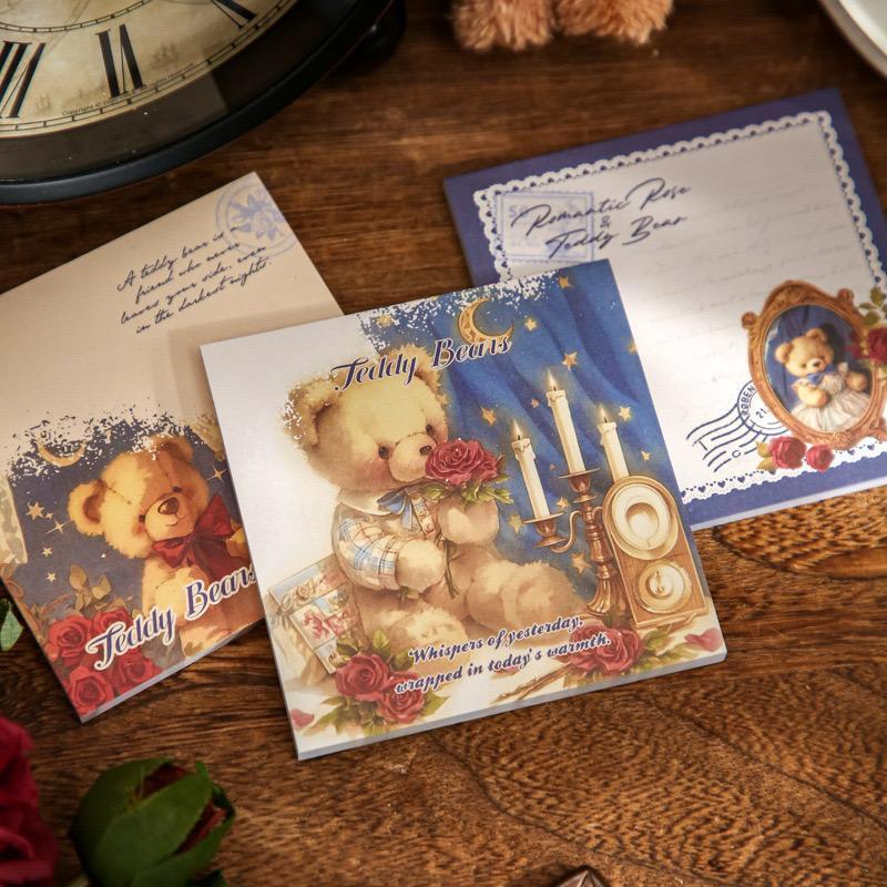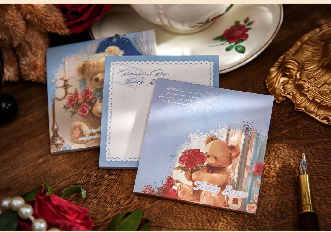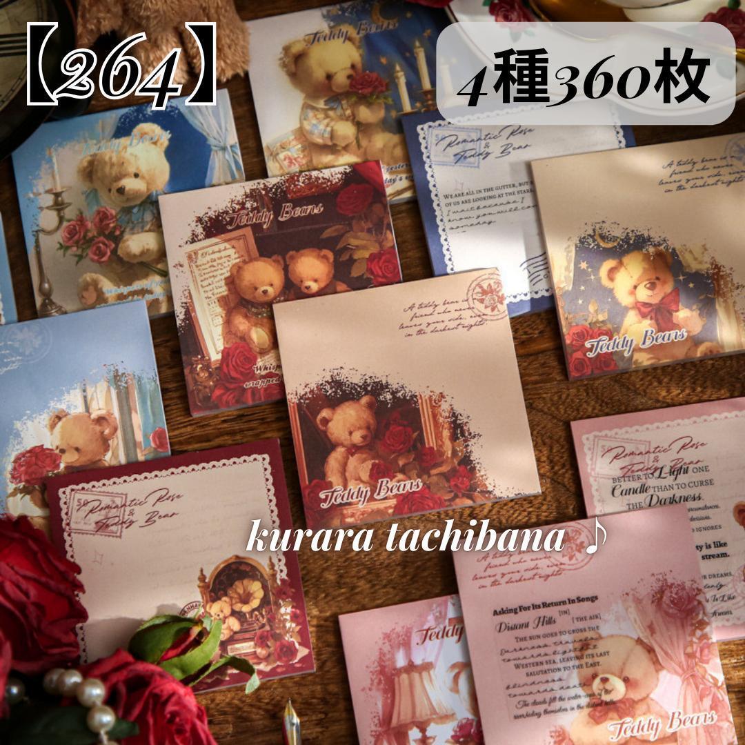くま、薔薇柄デザインのかわいい付箋メモ素材紙4種セット