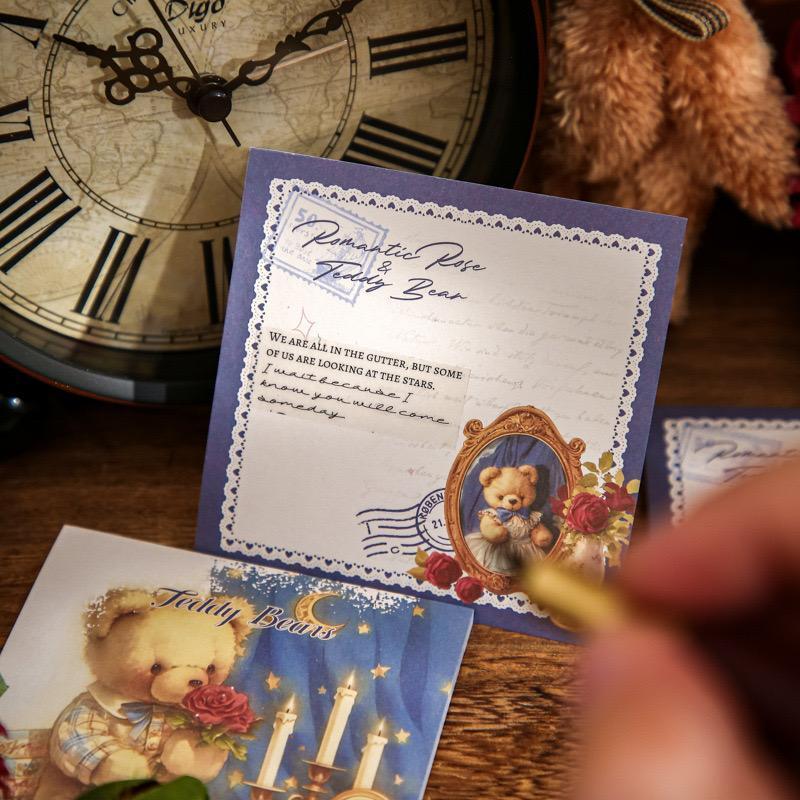花 フラワー 海外ステッカー おしゃれ かわいい レトロ アンティーク チェック柄 付箋 ベアー ぬいぐるみ