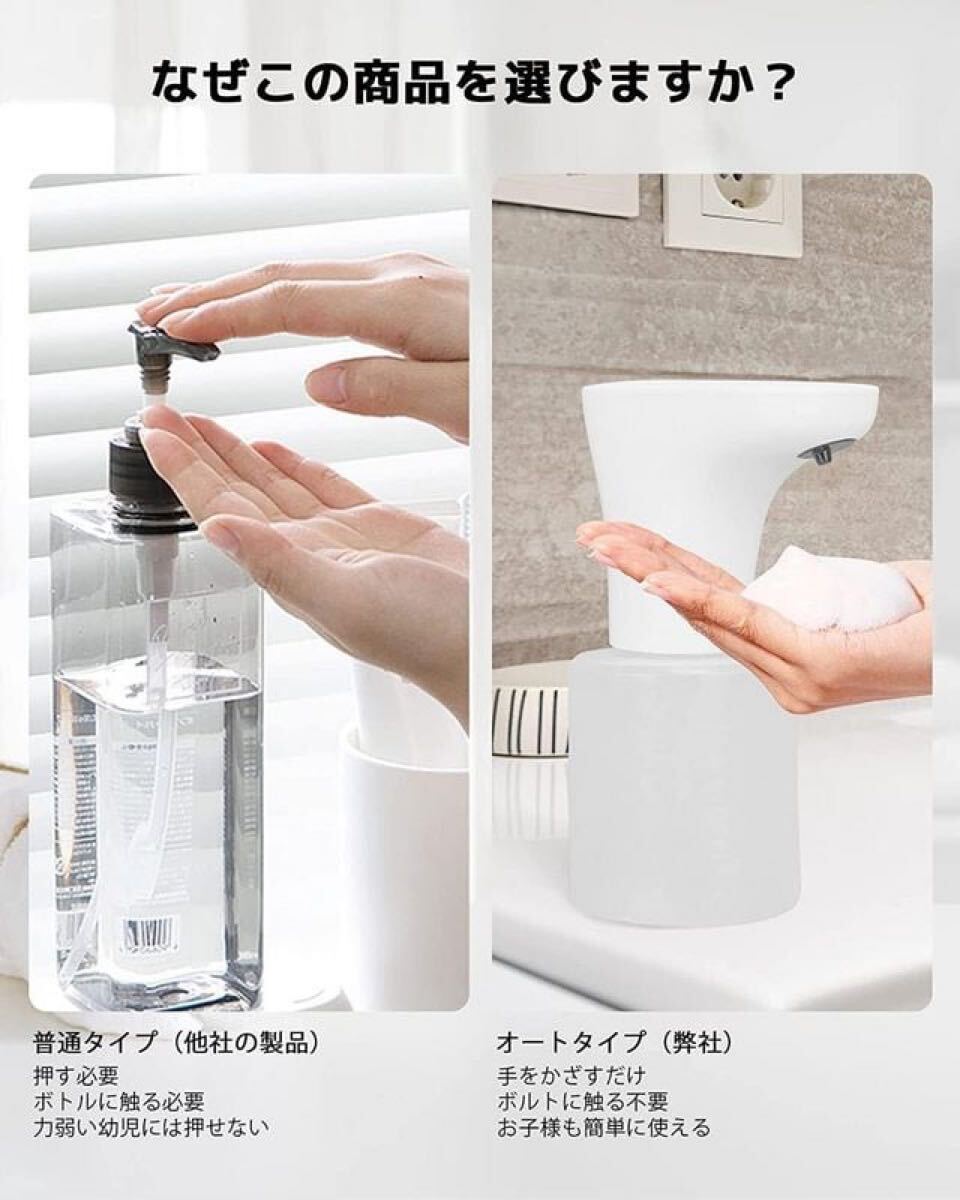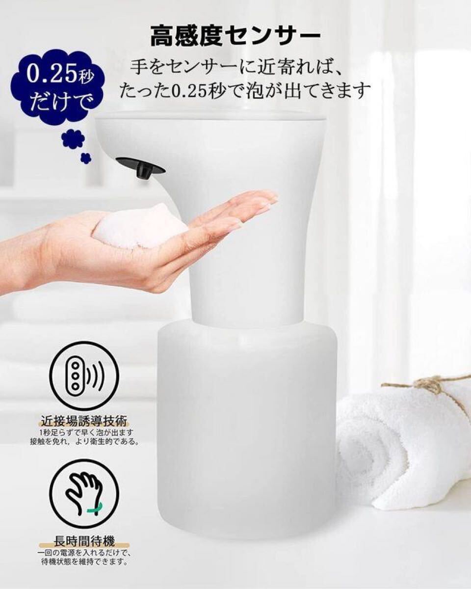 手をかざすだけで泡ハンドソープが自動で出てくる便利で衛生的なソープディスペンサーです。
