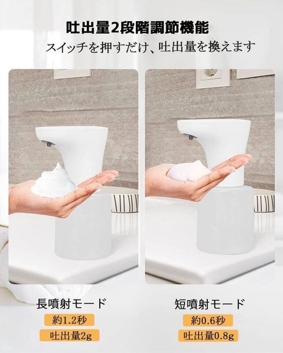 電源ボタンを1度押し、LEDランプが点灯したら2度押すだけで出てくる泡の量を2段階で切替できます。