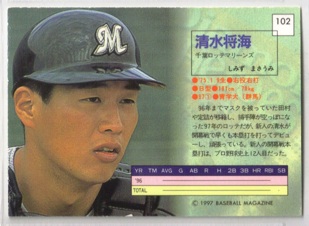 清水将海 千葉ロッテマリーンズ 97BBM DH ダイヤモンドヒーローズ No.102