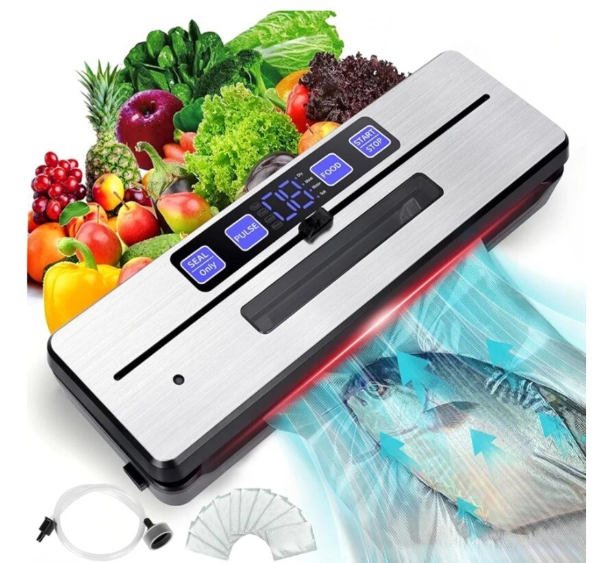 【強力な吸引力&簡単操作】密封パック機には2つの操作モードがあります、1つはシールのみ、もう1つは真空とシール。包装袋を置いて、袋の口を真空パック機の袋カードに入れて、電源をリンク→startボタンをクリック→食べ物に合った真空モードを選択→作業開始→画面表示OK、作業終了→フタを開けて真空袋を取り出します!ご注意:1.封口機能のみが必要です。SEAL(シール)ボタン+START(起動)ボタンを直接押してください。2.外抽気管を利用して真空にするだけで、EXTET VAC(真空抽気)ボタン+START(起動)ボタンを直接押してください。真空袋の袋口を袋カードに入れた後、必ず両手で上蓋の両端を押してください。すると、「カチッ」という音がします、これは蓋が閉まったことを意味します。真空パック器の蓋が閉まっていないと、真空包装の効果に影響が出ます。ケーブルを本体に接続する時、少し力を入れてくださいますお願いします。