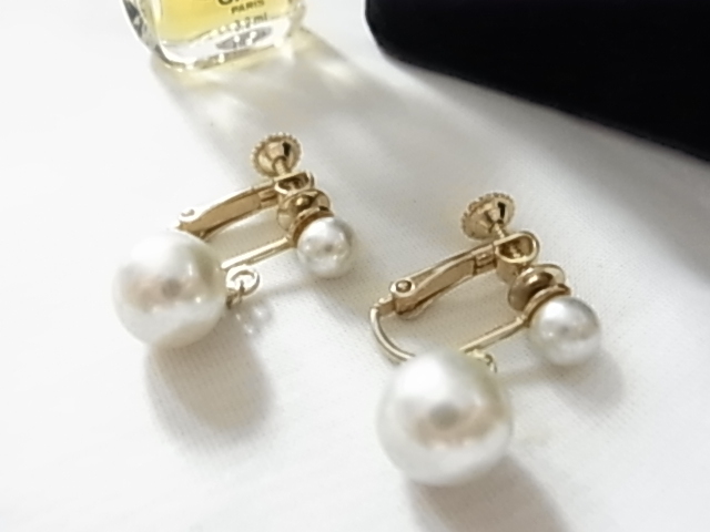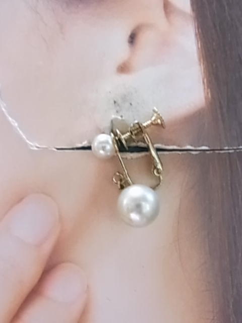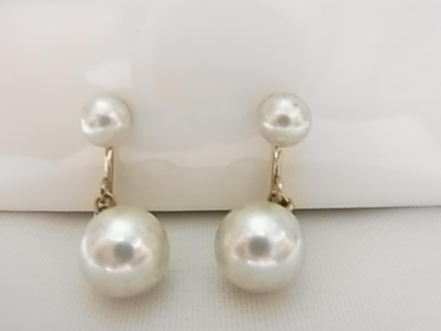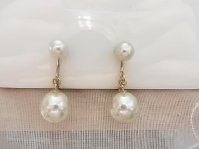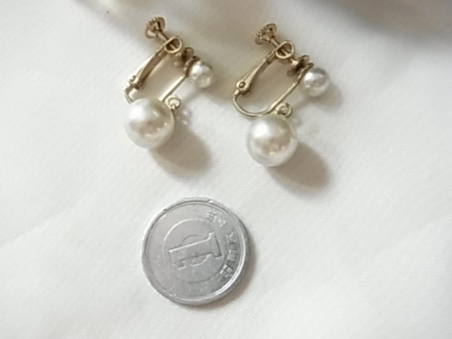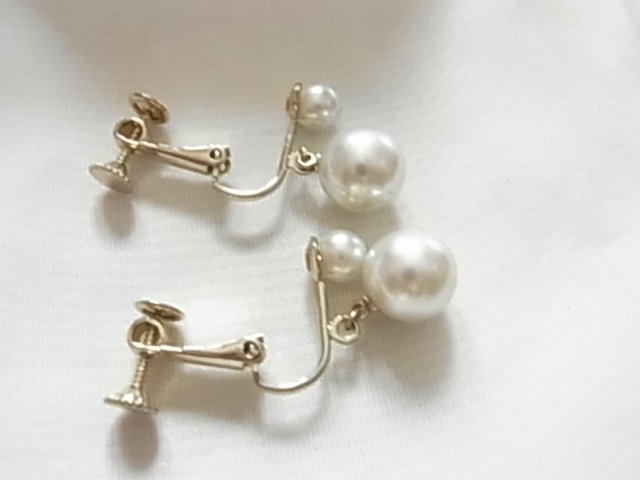 ビンテージ/ヴィンテージ fakeパール イミテーションパール 大小2粒 耳元で揺れるデザイン 可憐で品ある印象のレトロイヤリング♪♪