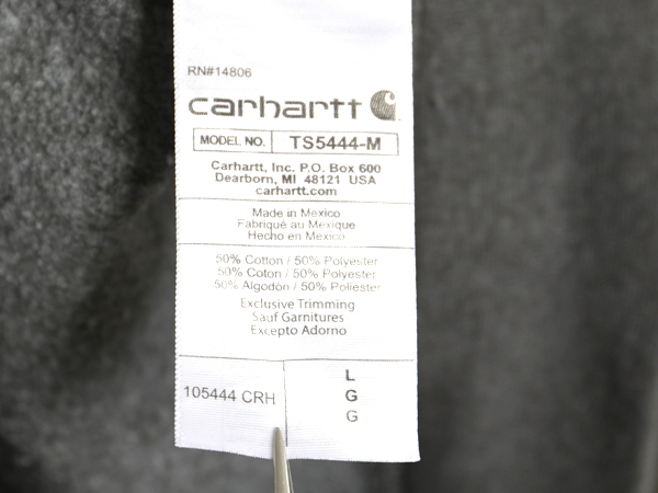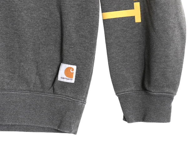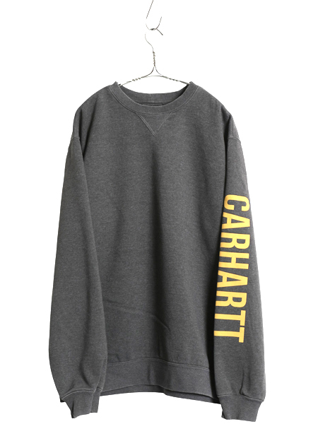 商品名 | US企画 カーハート 前V スウェット メンズ L 古着 袖 プリント ワーク トレーナー ミドルウェイト 裏起毛 クルーネック チャコール グレー |