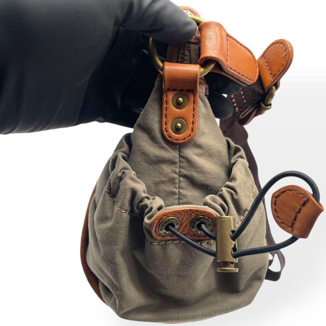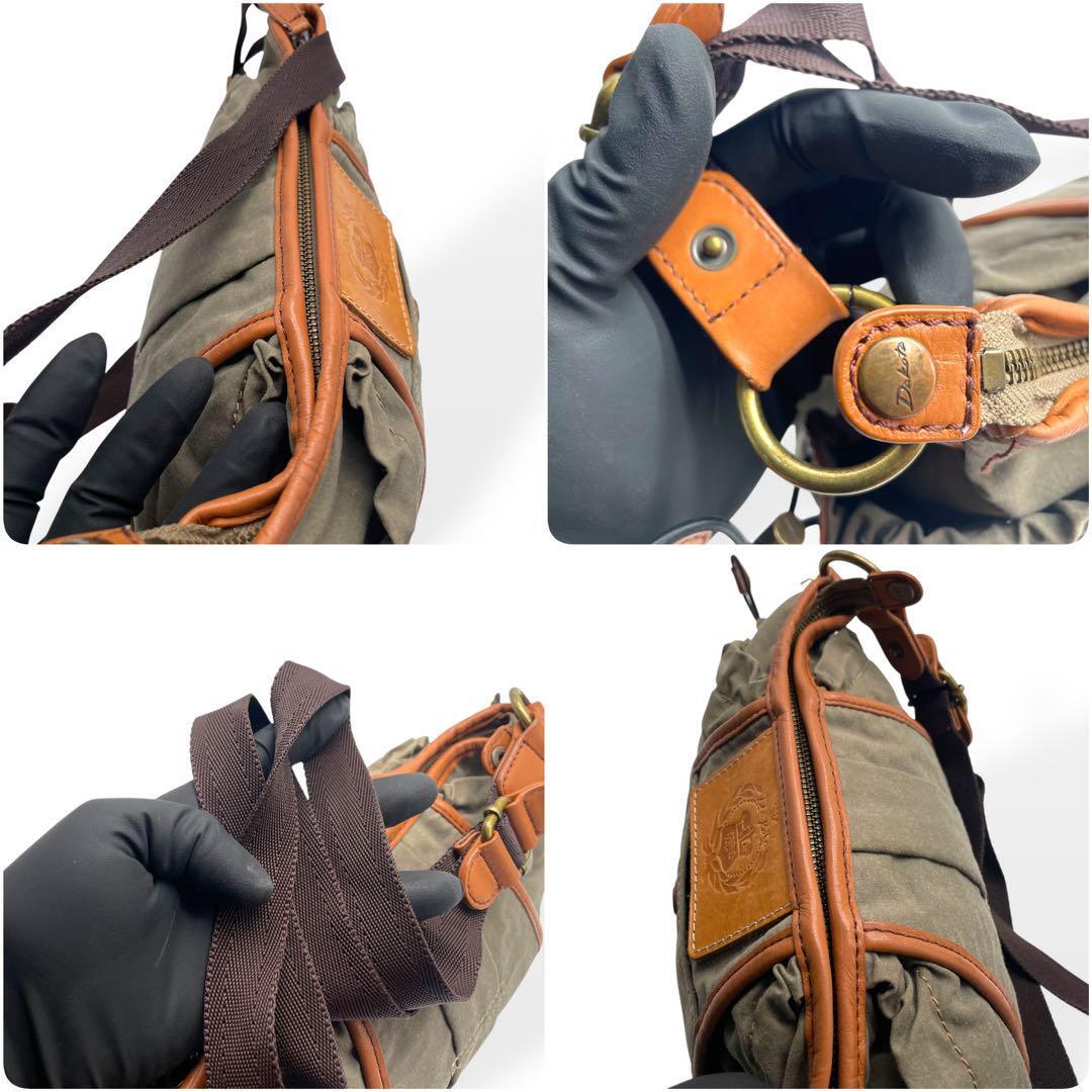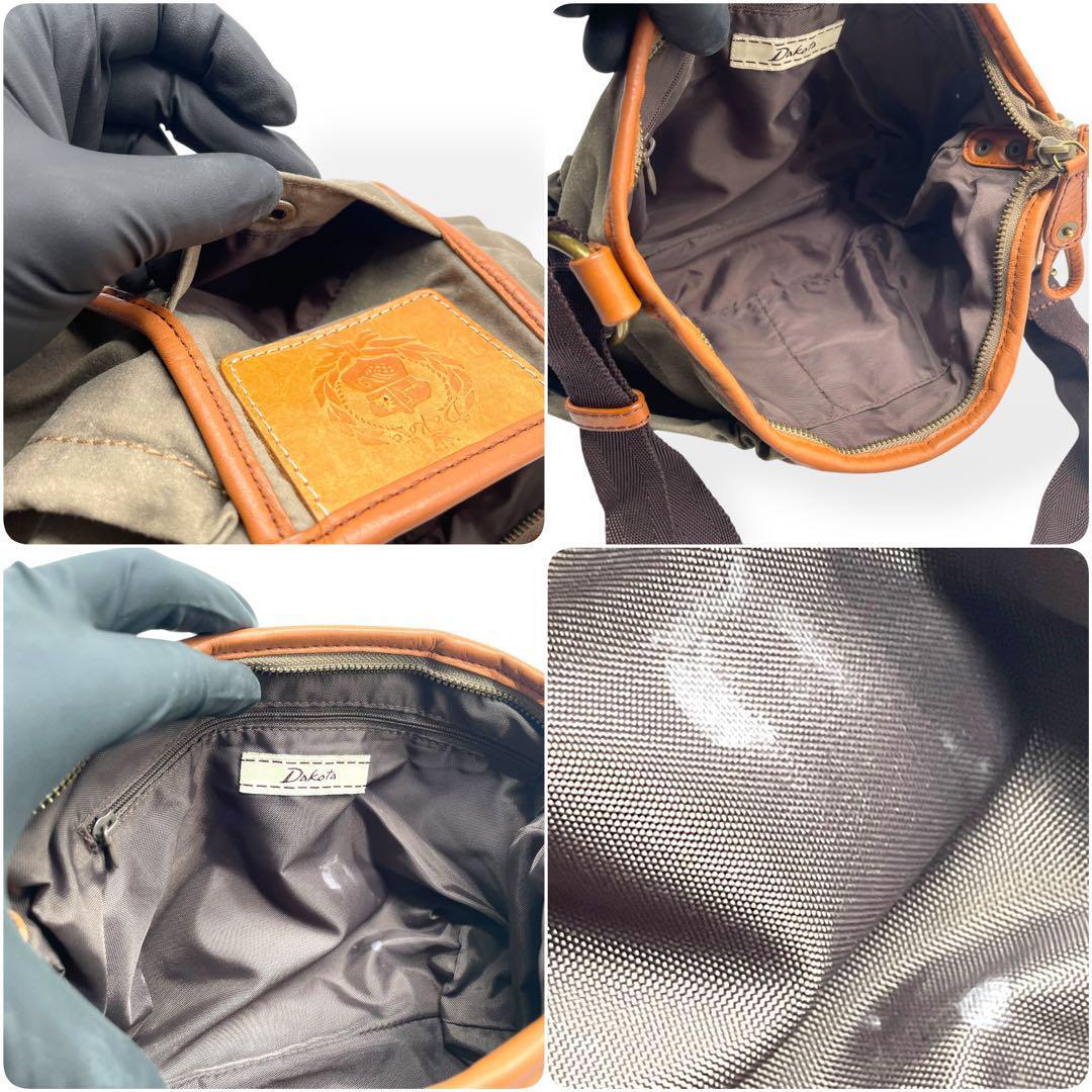 美品 Dakota ダコタ ショルダーバッグ キャンバス レザー カーキ 茶