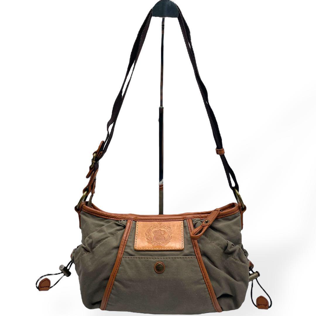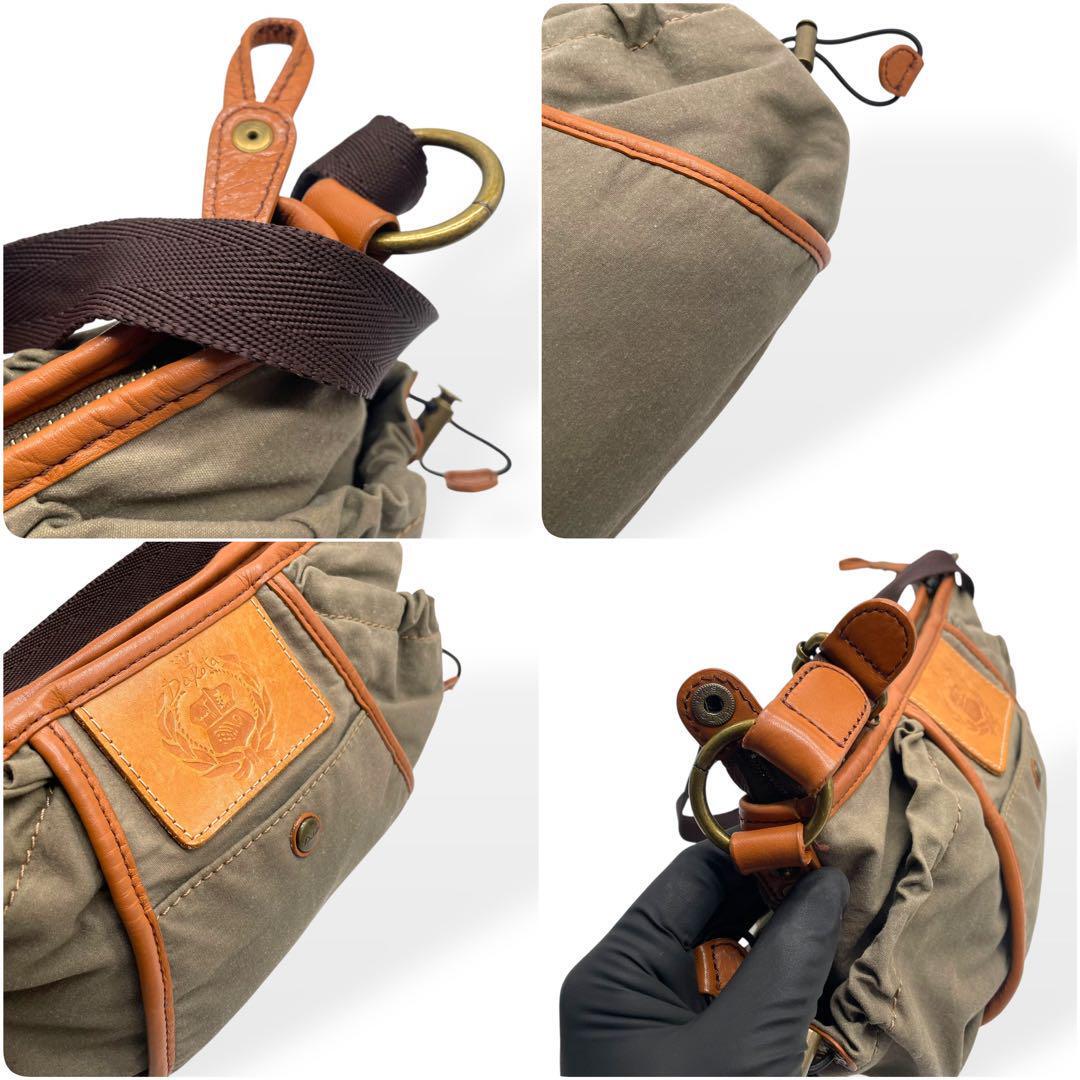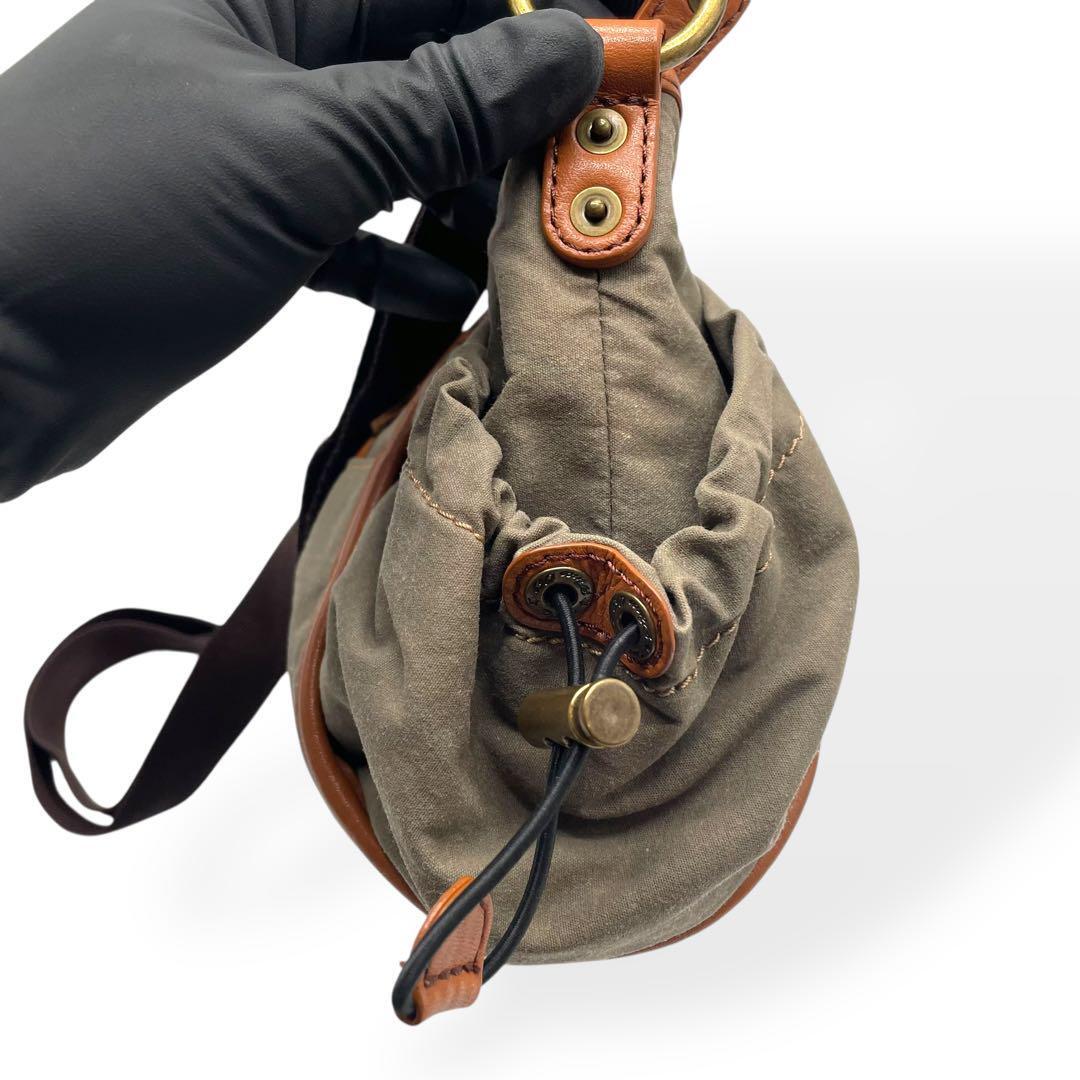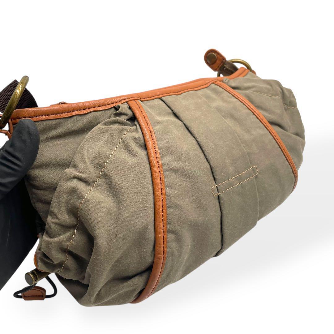 美品 Dakota ダコタ ショルダーバッグ キャンバス レザー カーキ 茶